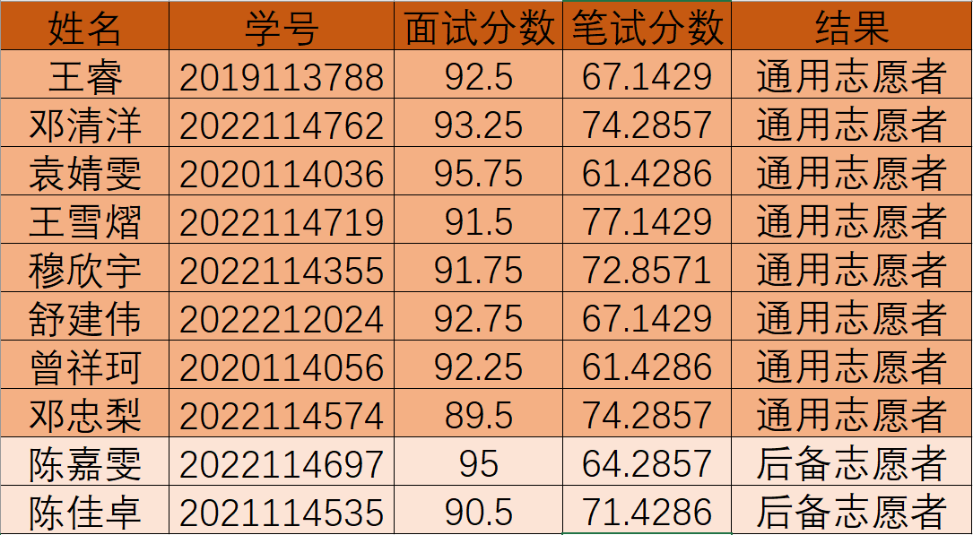 团委书记杨都强、院团委相关指导老师梁爽、张婷、郑非。面试主要考察志愿者的政治素养、综合能力、在校表现及其他综合反映志愿者能力的内容。经评委综合评审,现选拔出8位通用志愿者及2位后备志愿者,现公示如下:
