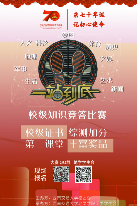由蘑菇视频 校团委主办,地学学生会承办的新生文化节—“一站到底”知识竞赛复赛将于10月26日19:30于犀浦校区X4156、X4157进行。此次比赛初赛在线上进行,共吸引了四百余名学生参加。在激烈的比拼之下,共有20名选手进入复赛。在现场你不仅可以体会到选手们之间迸发出的火花,还可以学到各个方面的知识。