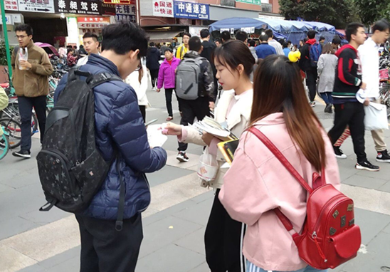 在线下答题正式举办之前,针对消防走廊做出相应的宣传:提前五天在官方QQ和微信公众号上发表推文,并开展了线上答题赢奖品和转发集赞赢奖品的活动,以扩大活动的影响力。同时在活动举办前两天组织小干事在二食堂和四食堂门口发放活动宣传单,积极讲解活动意义,号召广大同学参与线上答题以及19日当日的线下答题活动。