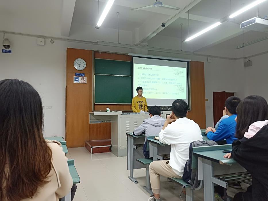 为广泛听取学生意见,代表和维护广大同学合法利益,加强院、班两级信息沟通和交流,地球科学与环境工程学院青年之声权益委员会于10月31日(星期三)晚9点30分在X4156召开了本学期第二次会议。大会由权益委员会负责人潘越、地学学生会主席周锦阳主讲,2017、2018级全体权益与生活委员参加会议。