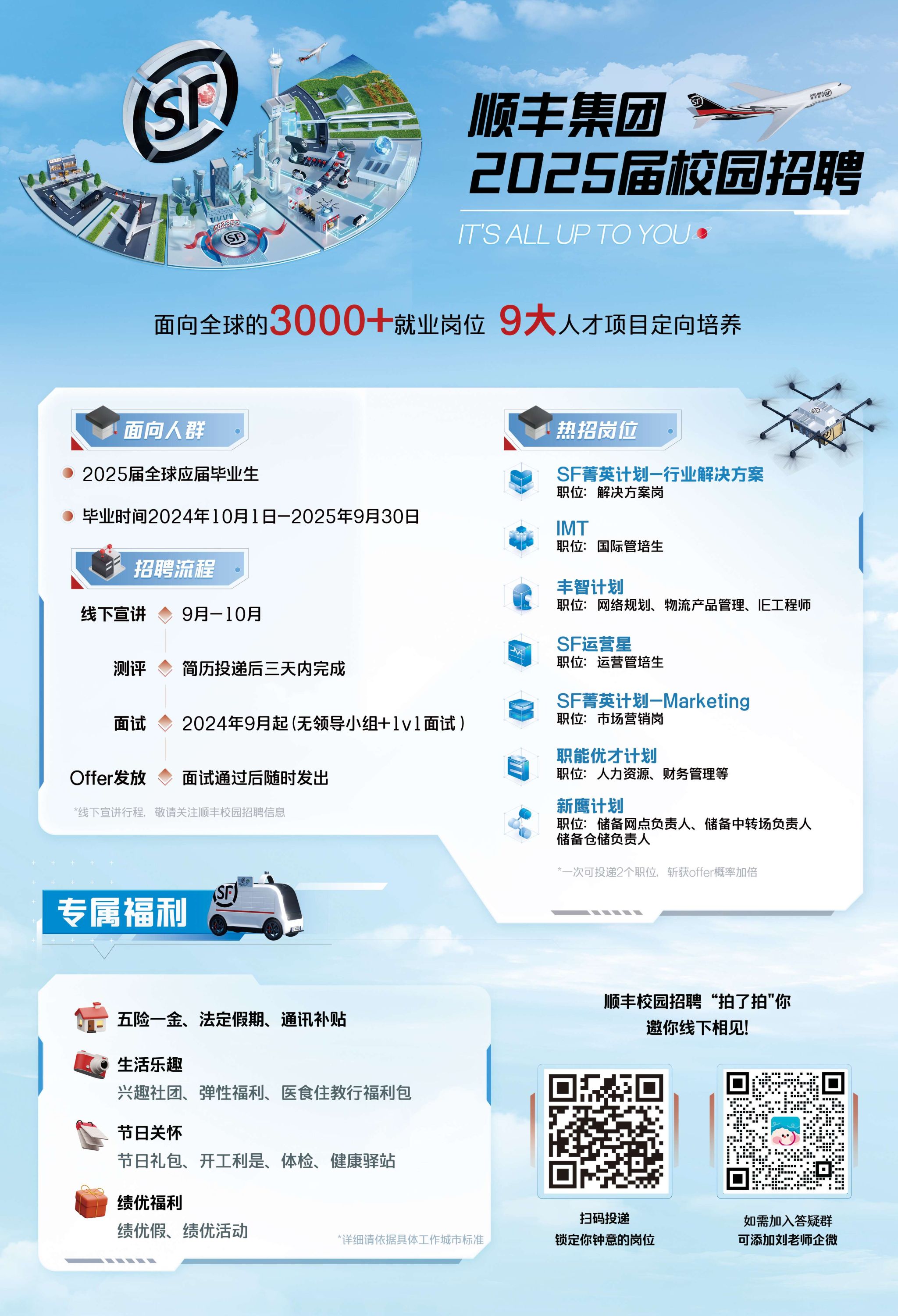 【世界500强】顺丰集团25届校园招聘宣讲会(3000+岗位)