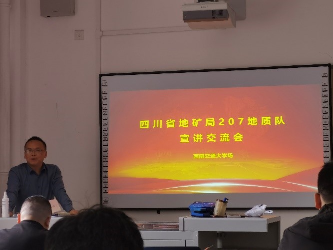 2021年10月29日14时,在地球科学与环境工程学院就业指导中心的协助下,四川省地矿局二零七地质队2022年秋季校园招聘会在x4136顺利开展。本次招聘会由四川省地矿局二零七地质队副队长赵伟主讲。
