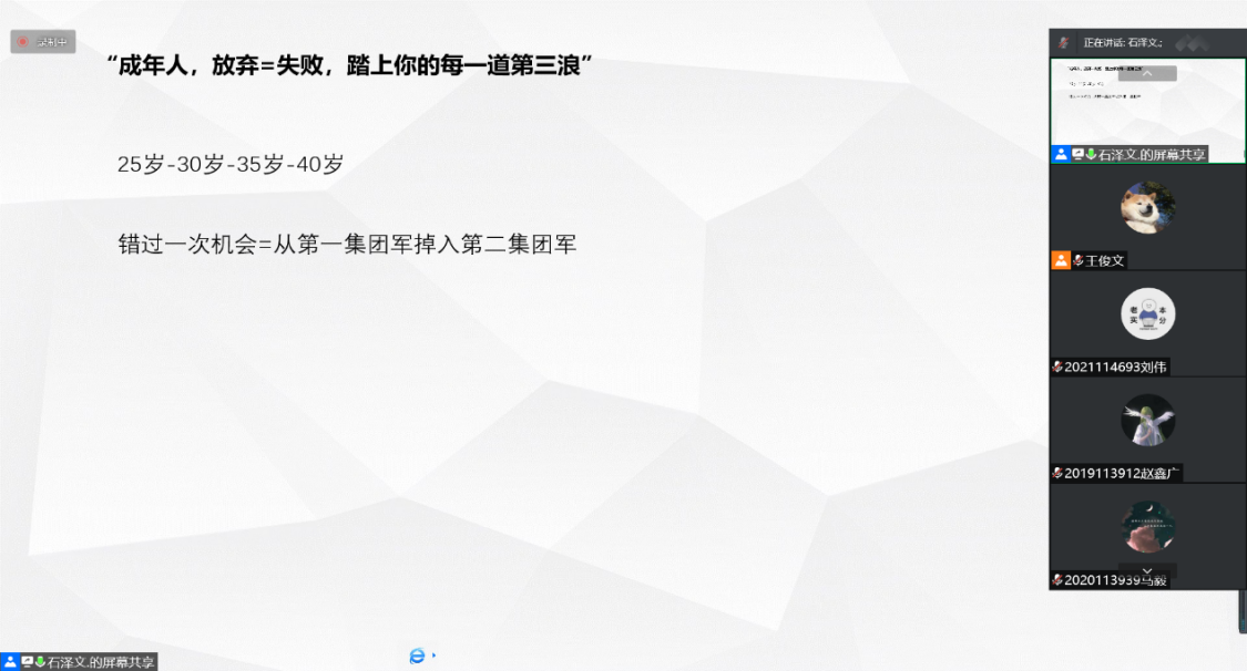 最后是线上答疑环节,同学们在听完石学长的分享后进行了积极的提问,学长根据自己的经验,耐心地答疑解惑。