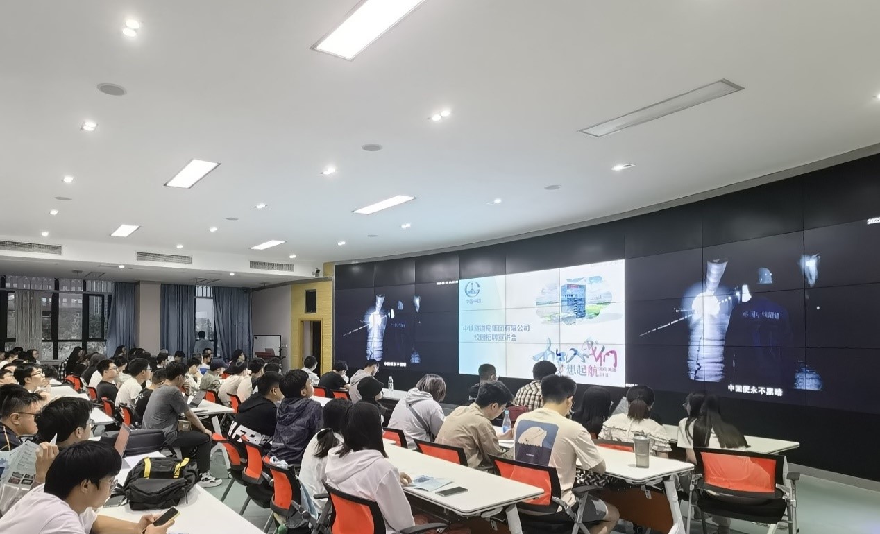 而后,负责人为同学们介绍了中铁隧道局的薪资福利,人才培养计划与工作环境的大致情况。会后,同学们就招聘要求及企业期望纷纷提问。