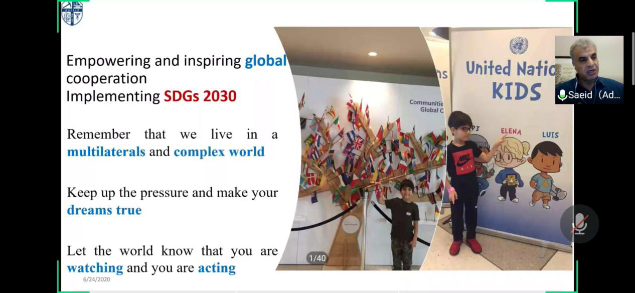 教授对各位本科生寄予更加国际化的视野,呼吁我们要作为国家的栋梁一代要去要去加强全球合作,实现2030年可持续发展计划,要牢记我们生活在一个多变而复杂的世界,要时刻谨记自己的重任,努力去实现自己的梦想,要让世界知道我们这一代人正在注视着人类的发展并正在为此行动。