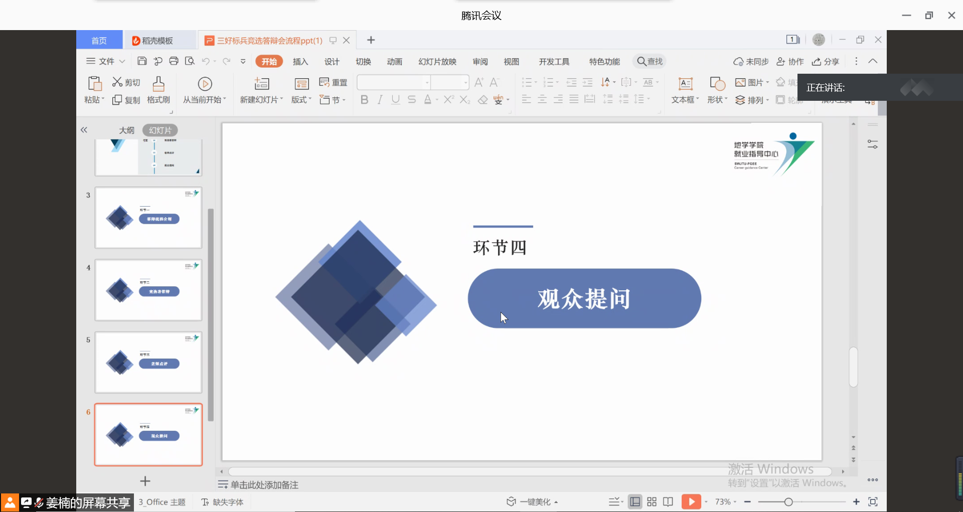 2018级辅导员、就业指导中心指导老师杨都强老师出席指导,活动通过腾讯会议线上开展,活动吸引到71名各年级观众听会学习。
