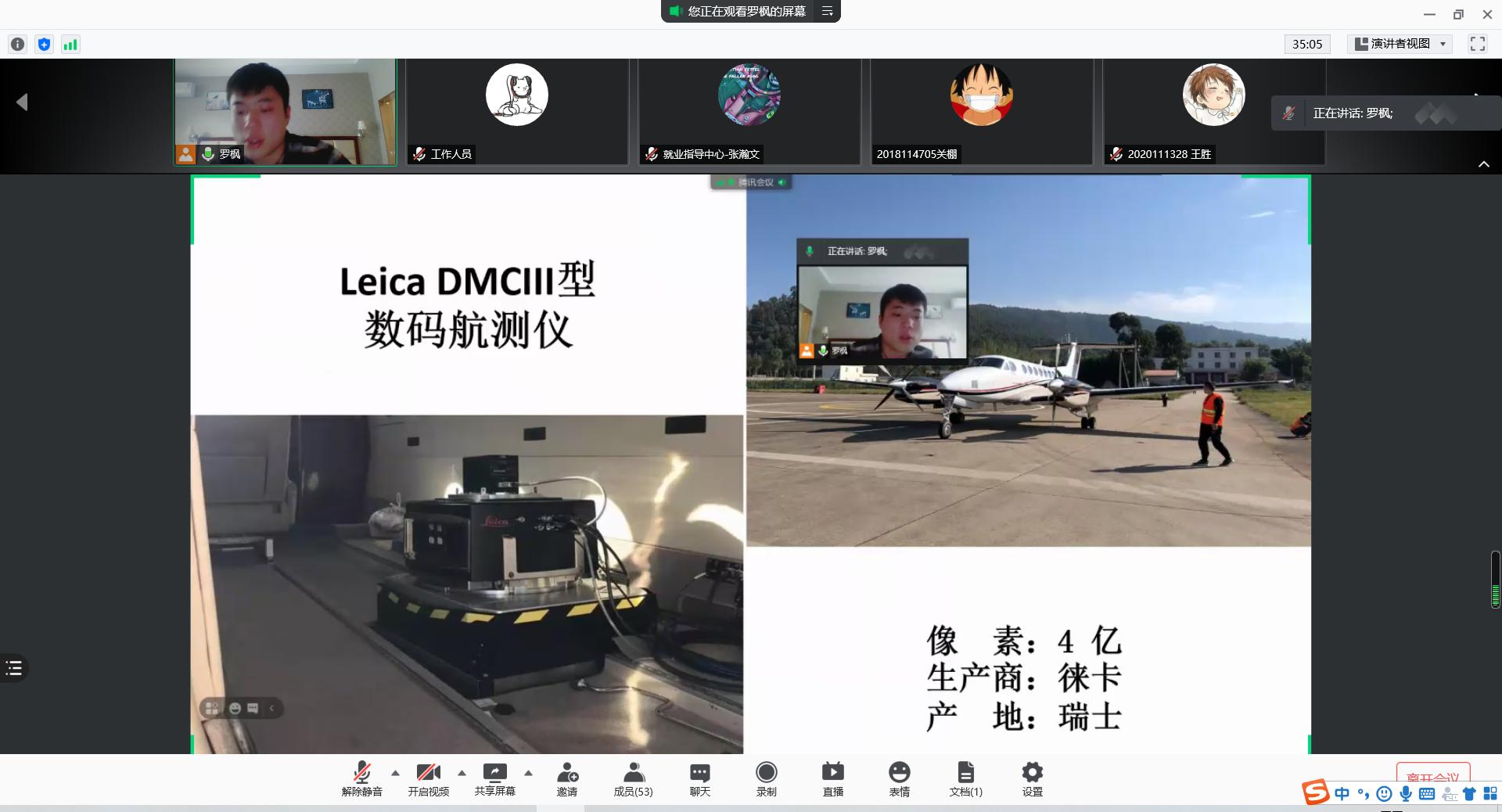 之后,罗枫学长向同学们讲解介绍了自己的工作内容,着重介绍了几种航测的无人机和小型飞机。使得观看会议的同学们大饱眼福的同时也了解了未来可能会从事的工作的相关前沿技术以及设备。