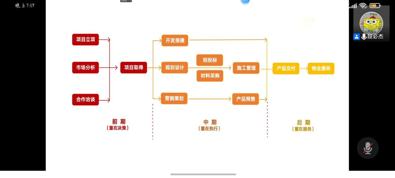 学长的讲座从自我职业生涯、房地产相关工作和职业规划建议三个方面展开。首先学长介绍了自己的职业生涯,讲述了自己在公司从工程部到投资部工作的变化和自己在选择工作时的想法。之后,学长在讲房地产工作时将房地产比作面包,说各个阶段的工作就好比买面粉、面包加工和面包销售,运用通俗易懂的比喻使大家基本了解了房地产工作,同时解决了同学们对房地产工作的好奇。