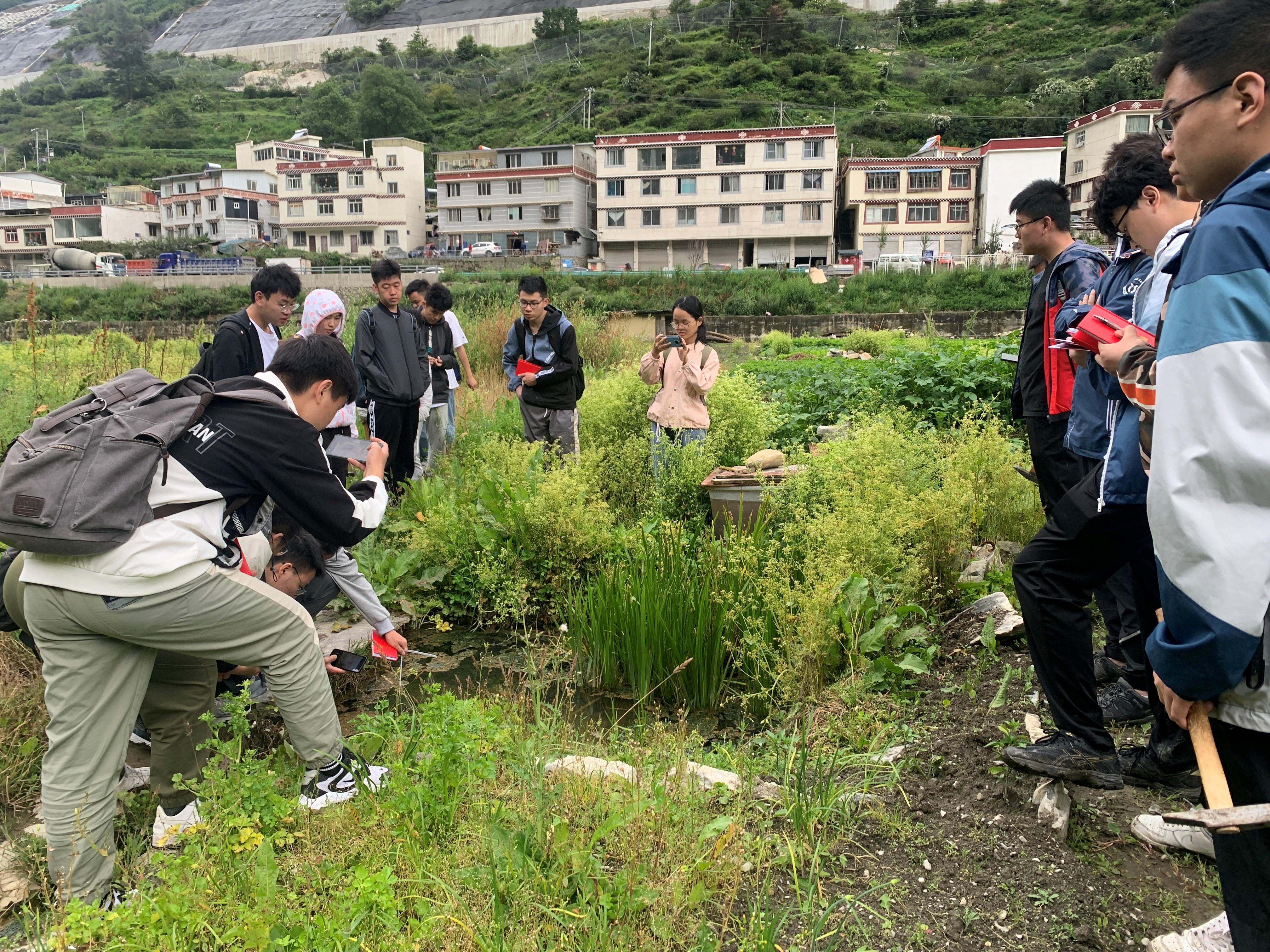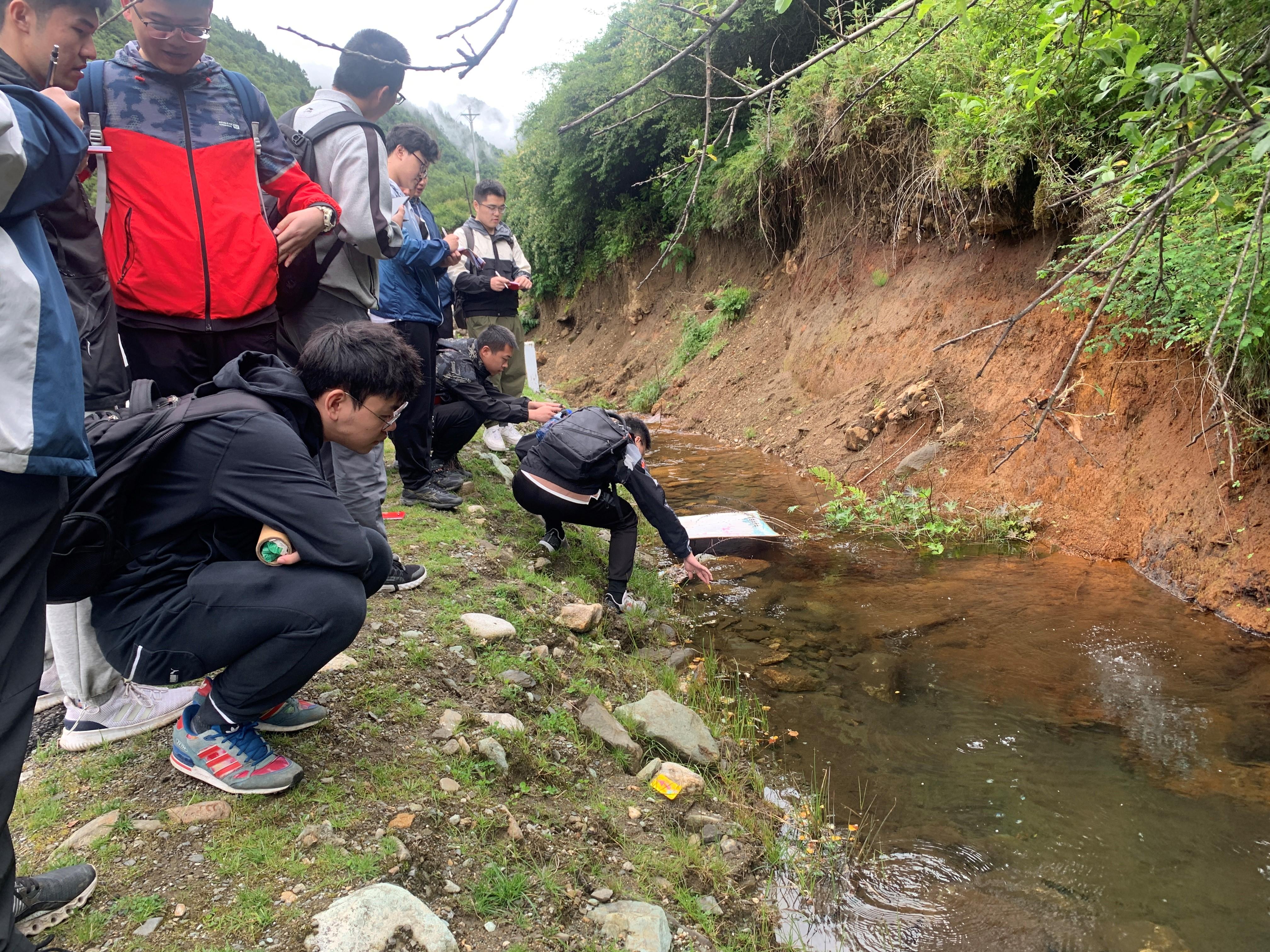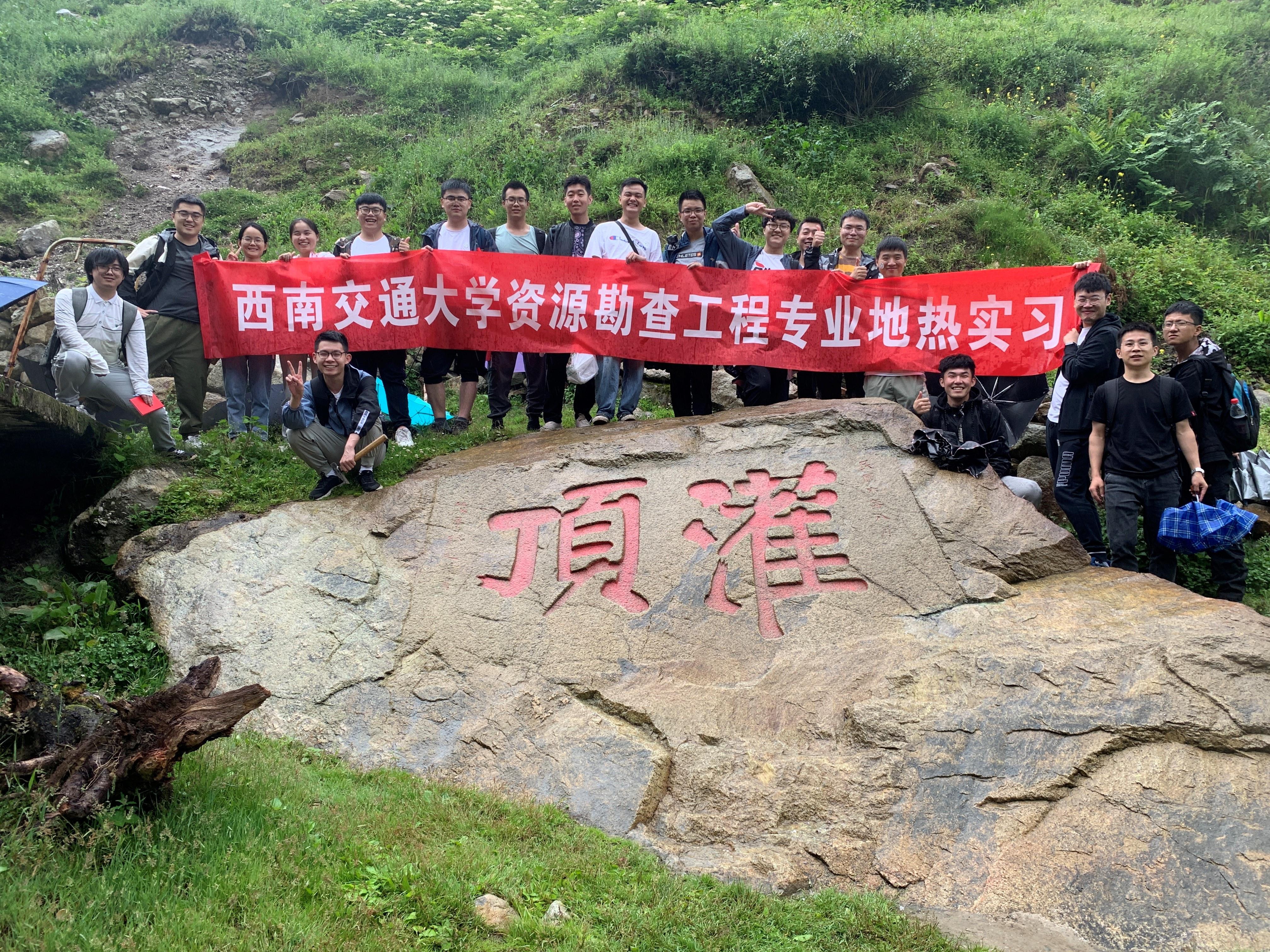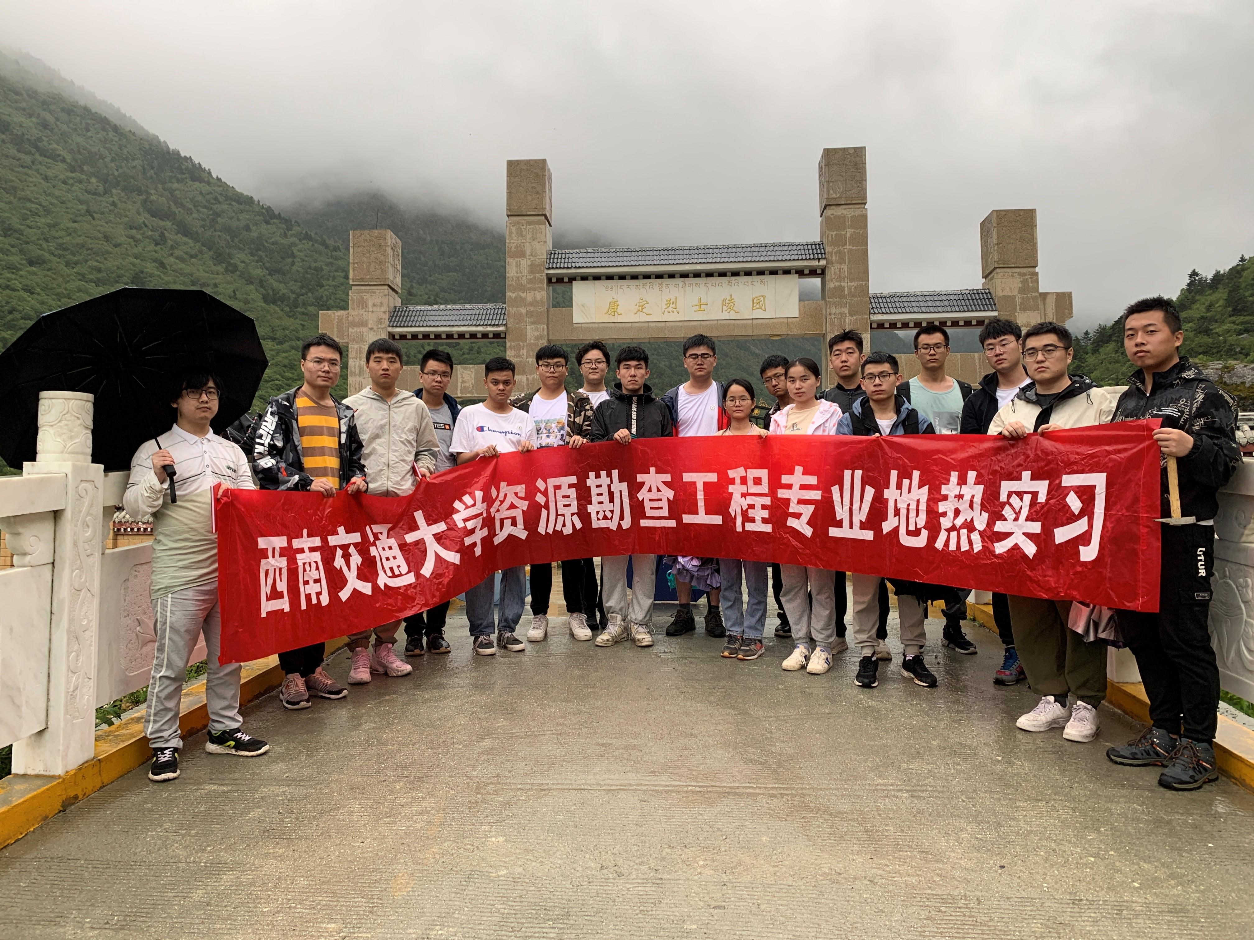 最后,张云辉和石宇老师带领资源勘查工程专业18名学生在康定进行了外业实习。针对康定榆林宫、二道桥、中谷等地的温泉和冷泉的地质成因、地质构造等内容开展了调研,并参观了榆林宫地热供暖项目的室内配套设施与工艺流程。实习过程中,途经康定市烈士陵园,带队老师不忘进行课程思政,为学生宣讲了红军长征的艰难险阻,鼓励大家要弘扬革命烈士吃苦耐劳的精神,学好专业知识,为我国矿产资源行业发展贡献力量。至此,资源勘查工程专业在康定的第一次外业实习顺利完成。