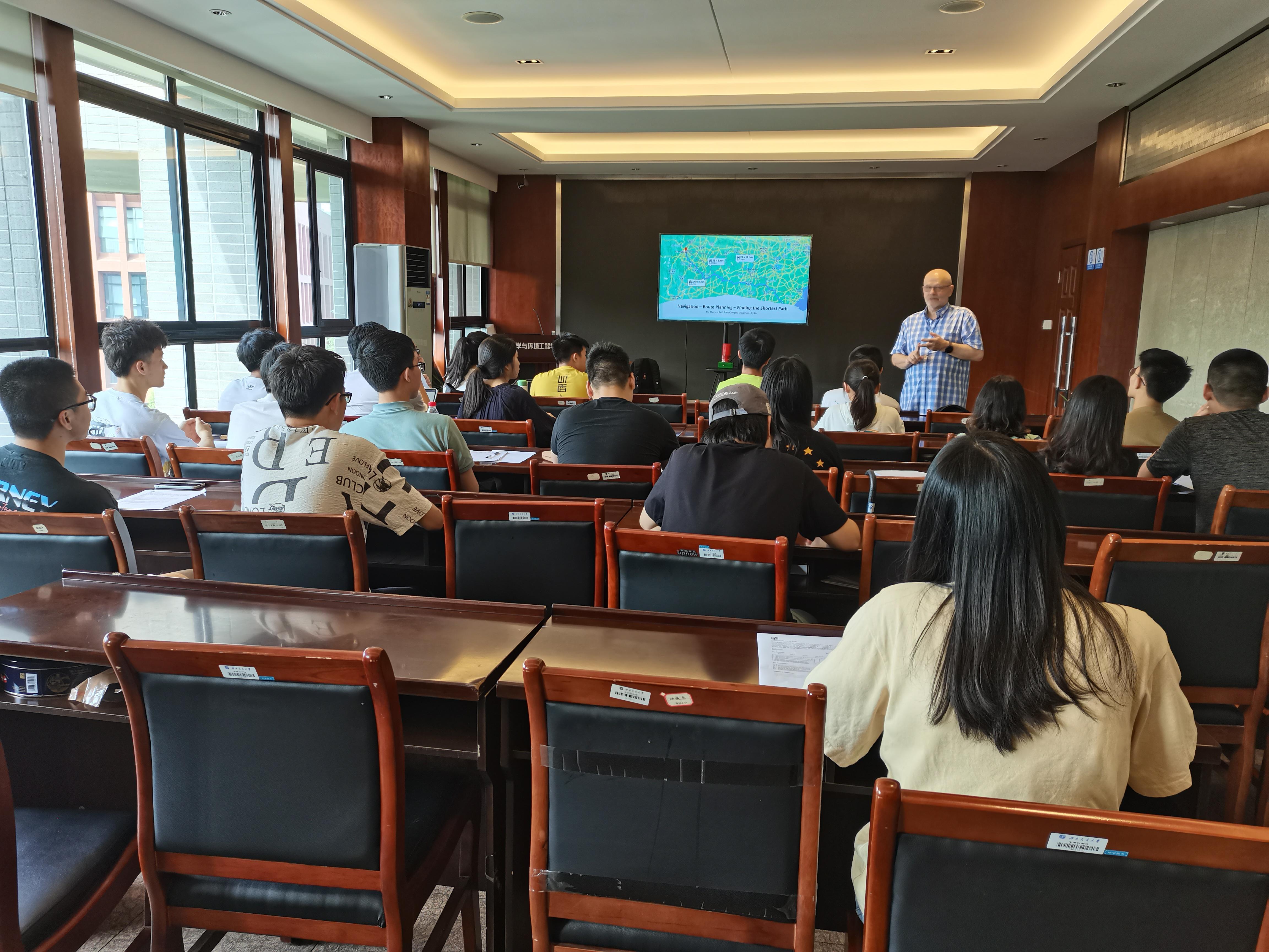 Lutz Plümer教授作题为“What Geodesy and Geoinformation are all about. – Route Planning – the basic Algorithm in your Navigation System”的讲授,现场通过交通出行如何进行路径规划的问题,与同学们进行讨论交流,现场气氛热烈。2020级环境一班的雷茗羽同学谈到,讨论过程很是有趣,自己最感兴趣的是大家对交通出行影响因素的罗列,通过Lutz Plümer教授细致的梳理,能够清晰感受到一种很强的思维逻辑,自己觉得非常受益。她还表示,全英语的表达沟通平常很少有机会得到,通过国际暑期课程既学习了专业知识,也加强了自己对英语的运用,尤其是解锁了通过感知去理解新词汇的方式。