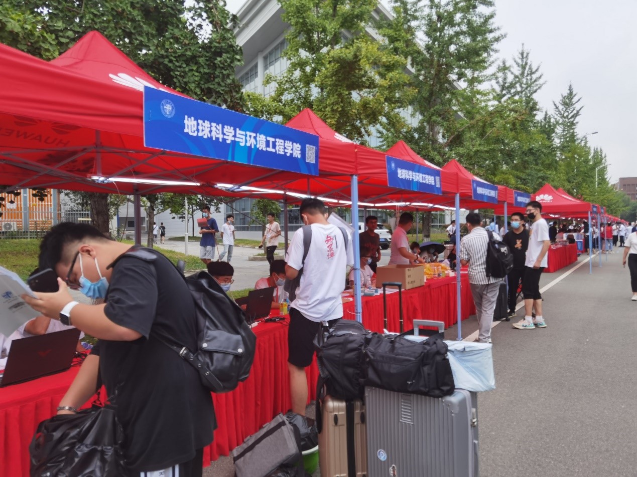 在校园内,各学院都安排了迎新志愿者,在宽阔苍绿的银杏大道上设立有新生接待处,多数新生的疑惑都有热情开朗的学长和学姐们的帮助解答。并且从新生踏入校园那一刻,就有学长学姐带着新生办理入学手续,领取一卡通、学院文化衫等大礼包,找宿舍,提行李的一条龙服务,而且宿舍在北区的新生还将有专门的校园小白龙送达至北区宿舍。
