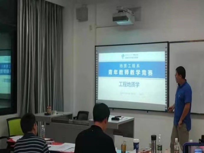 为了弘扬优良师德师风,提升青年教师的教学能力和业务水平,地质工程系青年教师教学竞赛于2021年9月26日上午8:00至晚上9:00,在犀浦校区X4131教室进行。本次参赛对象为年龄在40周岁以下并且开设本、研课程的青年教师,竞赛内容包含教学设计、课堂教学和教学反思3个环节。通过充分宣传和动员,我系符合参赛条件的青年教师全部参赛,共有24位。本次比赛邀请我系教学专家:程谦恭教授、赵晓彦教授、郭永春副教授、赵文副教授、覃礼貌老师担任评委,比赛由张志厚老师担任主持人。