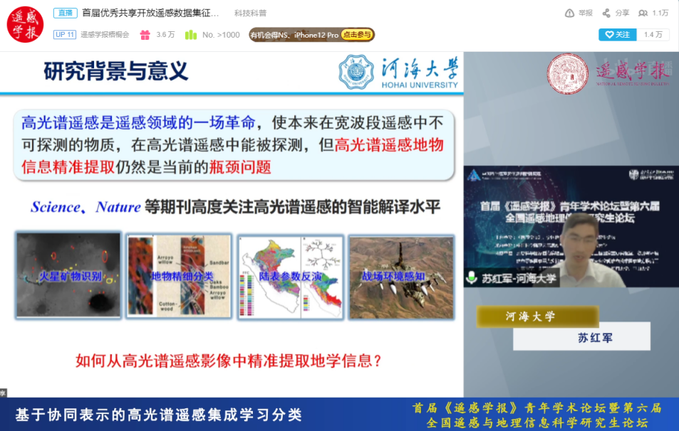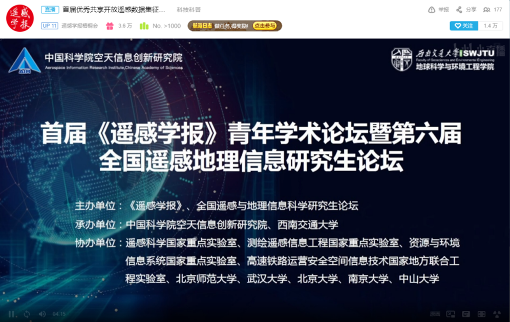 2021年9月25-26日,首届《遥感学报》青年学术论坛暨第六届全国遥感地理信息研究生论坛在知网、B站及科创中国线上平台举行。本次论坛由遥感学报、全国遥感与地理信息科学研究生论坛主办,蘑菇视频