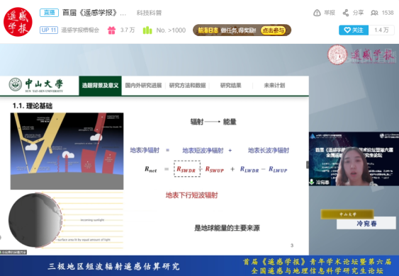 的陈瑞同学针对NIRv易受山区地形影响的缺陷,提出了地形改正的新型植被近红外反射率指数TCNIRv。中山大学的冷宛春同学介绍了三极地区短波辐射的研究意义,并采用了查找表等方法进行短波辐射计算。