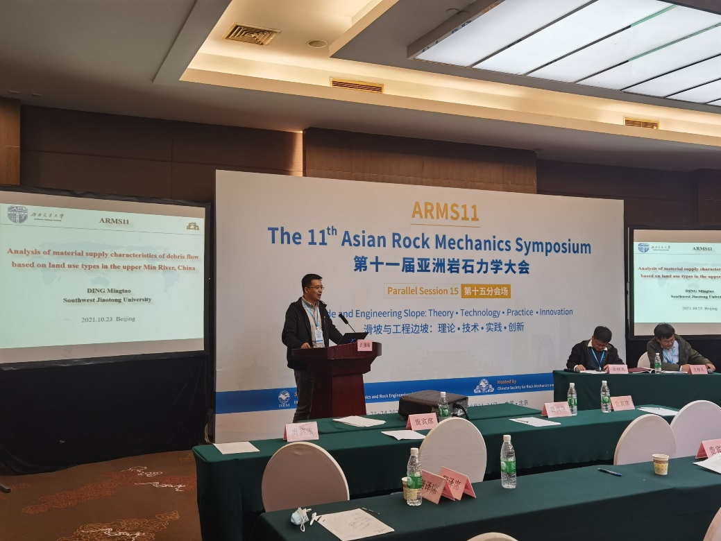 会议期间,程谦恭教授受邀于第十五分会场—“滑坡与工程边坡:理论·技术·实践·创新”作了题为“Fragmentation in Rock Avalanches”的特邀报告,并且受邀作为会议主席主持了该会场的第二环节的学术报告;丁明涛教授于第十五分会场作了题为“Analysis of material supply characteristics of debris flow based on land use types in the upper Min River, China”的专题报告;王玉峰副研究员于第一分会场作了“Dynamics of Rock Avalanches”的特邀报告;胡卸文教授团队6名博士研究生分别在该分会场作了专题学术报告及学术海报。
