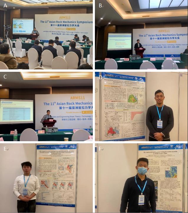 胡卸文教授团队博士研究生杨瀛、何坤、刘波在滑坡与工程边坡分会场分别作了题为“Research on the Spatial -Temporal Evolution Mechanism of Post-fire Debris Flow - Based on the Effects of Fire on Soil Property and Vegetation”、“Regional distribution and macroscopic mechanism of Emeishan basalt landslides”和“Kinetic characteristics investigation of a rockslide in strong earthquake zone using discrete element method”的专题学术报告。博士研究生金涛、席传杰和周瑞宸分别做了题为Susceptibility assessment of “2020. 3. 30” Xichang post-fire debris flow using a machine learning method”、“GIS-based coseismic landslide susceptibility assessment using ensemble learning approach a case of the 2017. 8. 8 Jiuzhaigou earthquake event”和“The reactivated mechanism of Aniangzhai ancient landslide in Danba County, China”的学术海报展示。