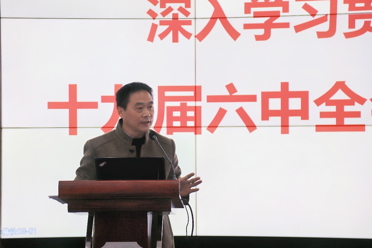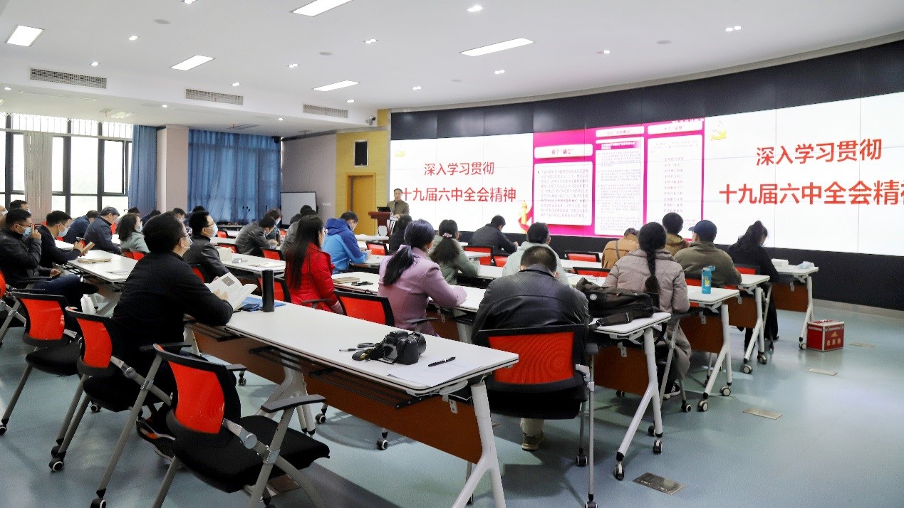 于X4243举行十九届六中全会学习贯彻启动会,学院党委书记关秦川、执行院长刘国祥等领导班子成员,教授委员会成员、教师党支部书记、学科带头人代表、各系(室、中心)主任、教师代表等参会。关秦川担任主讲人。