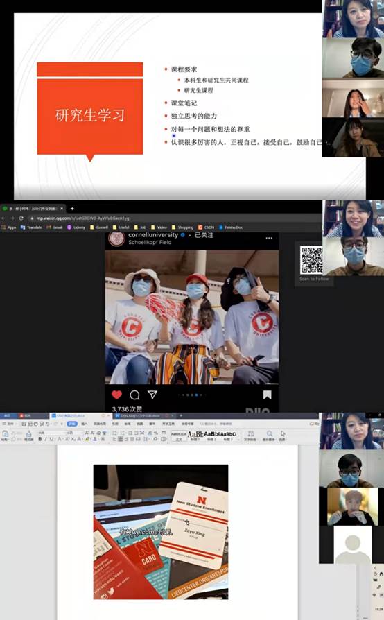 5名同学随后分别从防疫、住宿、交通、饮食、医疗、校园软硬件条件、留学生服务、本科/研究生学习和课余生活等方面进行了详细的介绍。