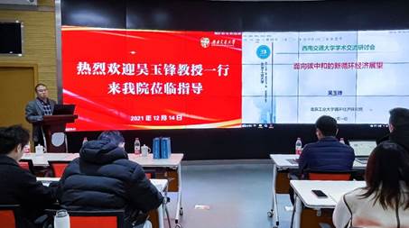随后,赵锐教授代表项目组分别就“大数据挖掘驱动的危废消纳路径研究”以及“碳中和背景下的碳标签实践分析”向吴玉锋教授汇报了项目及团队的最新研究进展。吴玉锋教授对团队工作表示了充分肯定,并对推动项目有序开展提出了中肯的意见和建议。