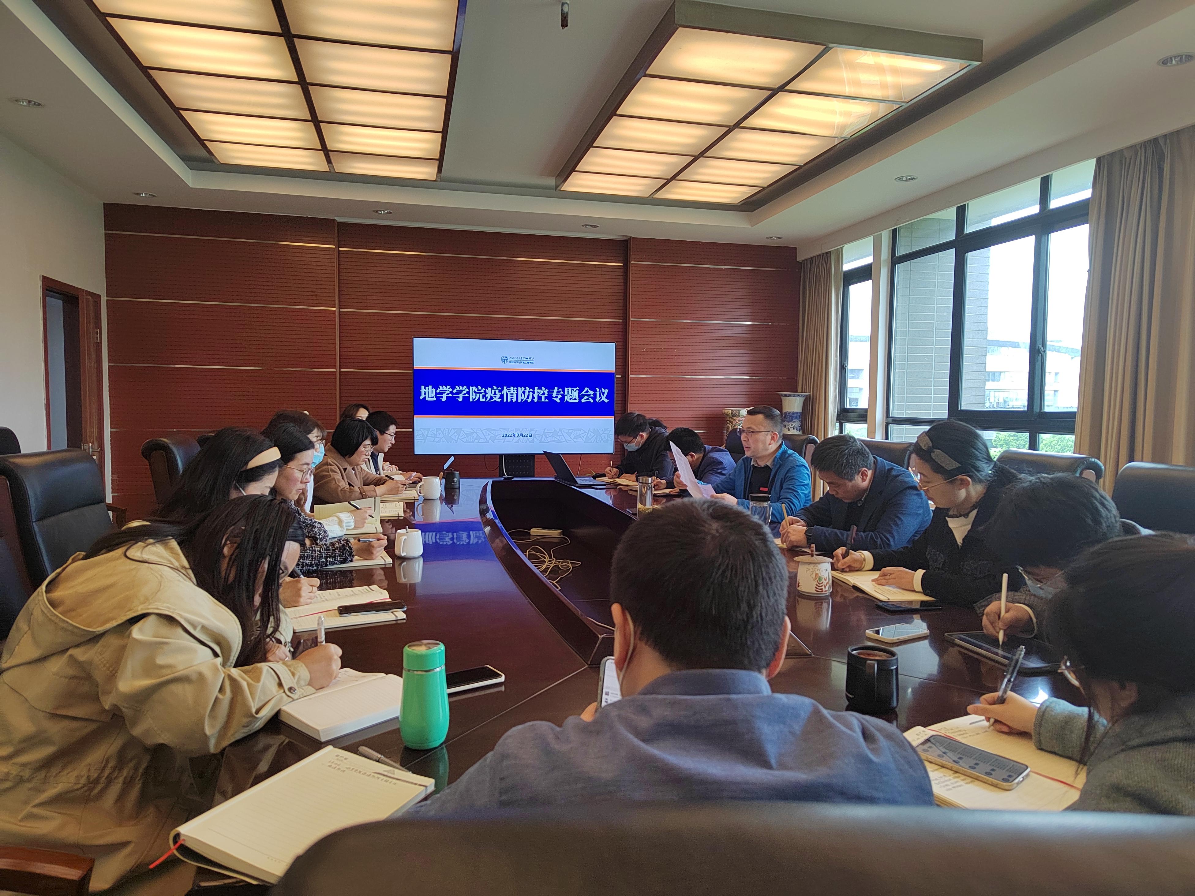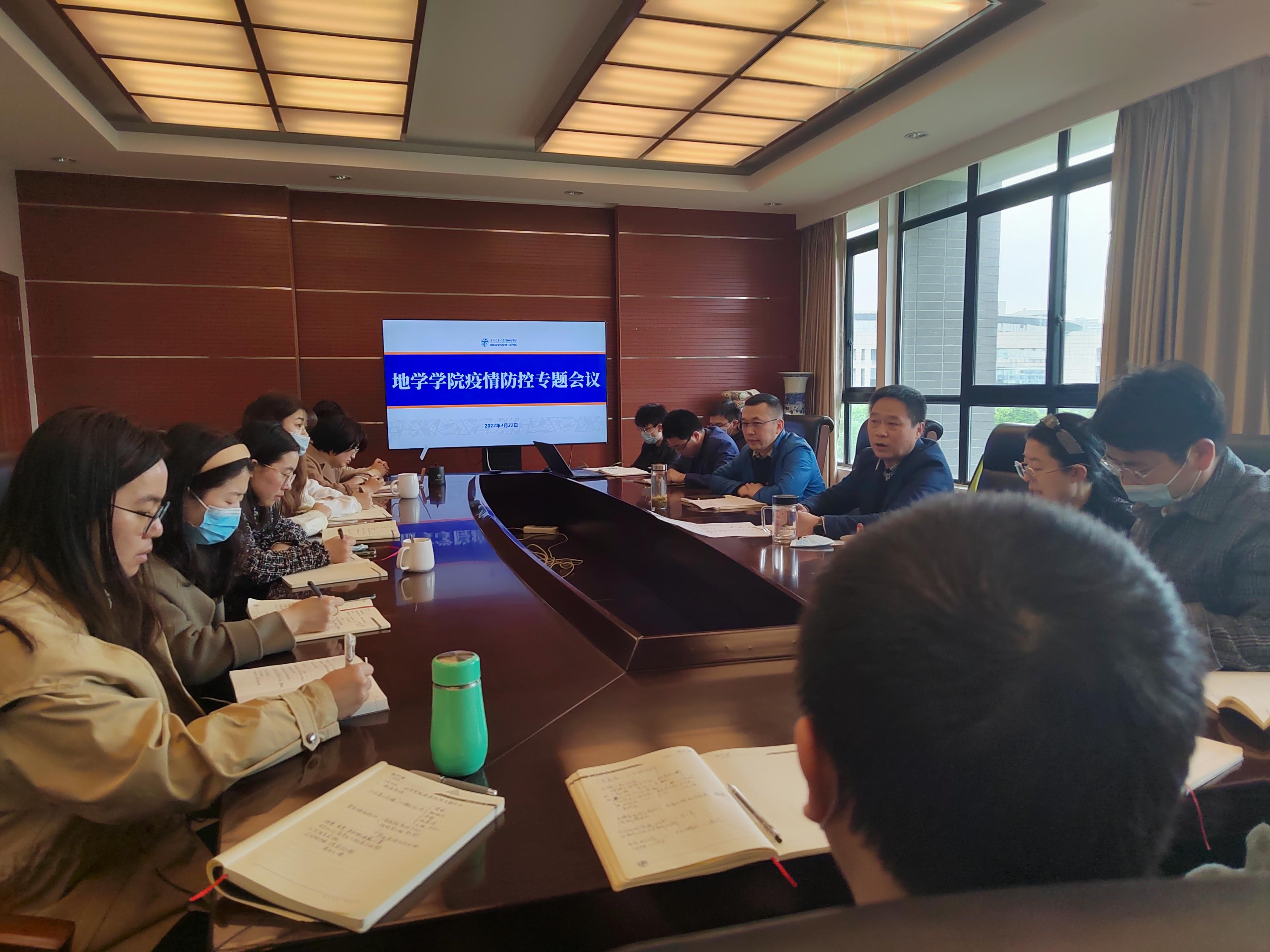 党委组织召开疫情防控专题会议,研究部署学院疫情防控相关工作,学院党委书记关秦川,党委副书记傅尤刚,综合事务办主任、学院疫情防控联络员杜鸿,及全体辅导员参加会议。会议由傅尤刚主持。