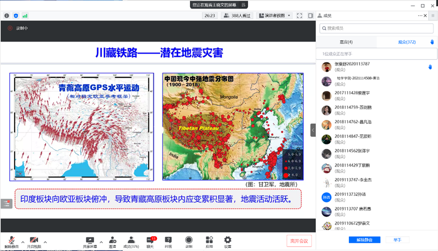 联合举办,我院承办的“青春献礼二十大·强国有我新征程‘地新引力’青年讲坛——从川藏铁路看大国工程”系列讲座,第四期《川藏铁路沿线地质灾害遥感监测实践与分析》如期在线上腾讯会议平台举行。本期讲座由蘑菇视频