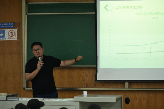 会议伊始,傅尤刚介绍了2022年高校在校生人数、2022年高校毕业生人数、2022年公务员考试报考人数、2022年考研报考人数和录取比例等多项具体数据,明确当今就业和考研形势的严峻性;在如此严峻的形势下,傅尤刚希望同学们能瞄准目标,选择考研的同学对于专业和院校选择以及备考方案要有想法有规划,一气呵成、一战成功;选择就业的同学要不怕吃苦,脚踏实地,勤学实干。不论同学们做出哪种选择,都要抓紧时间,慎重考虑,为自己的未来早做准备。