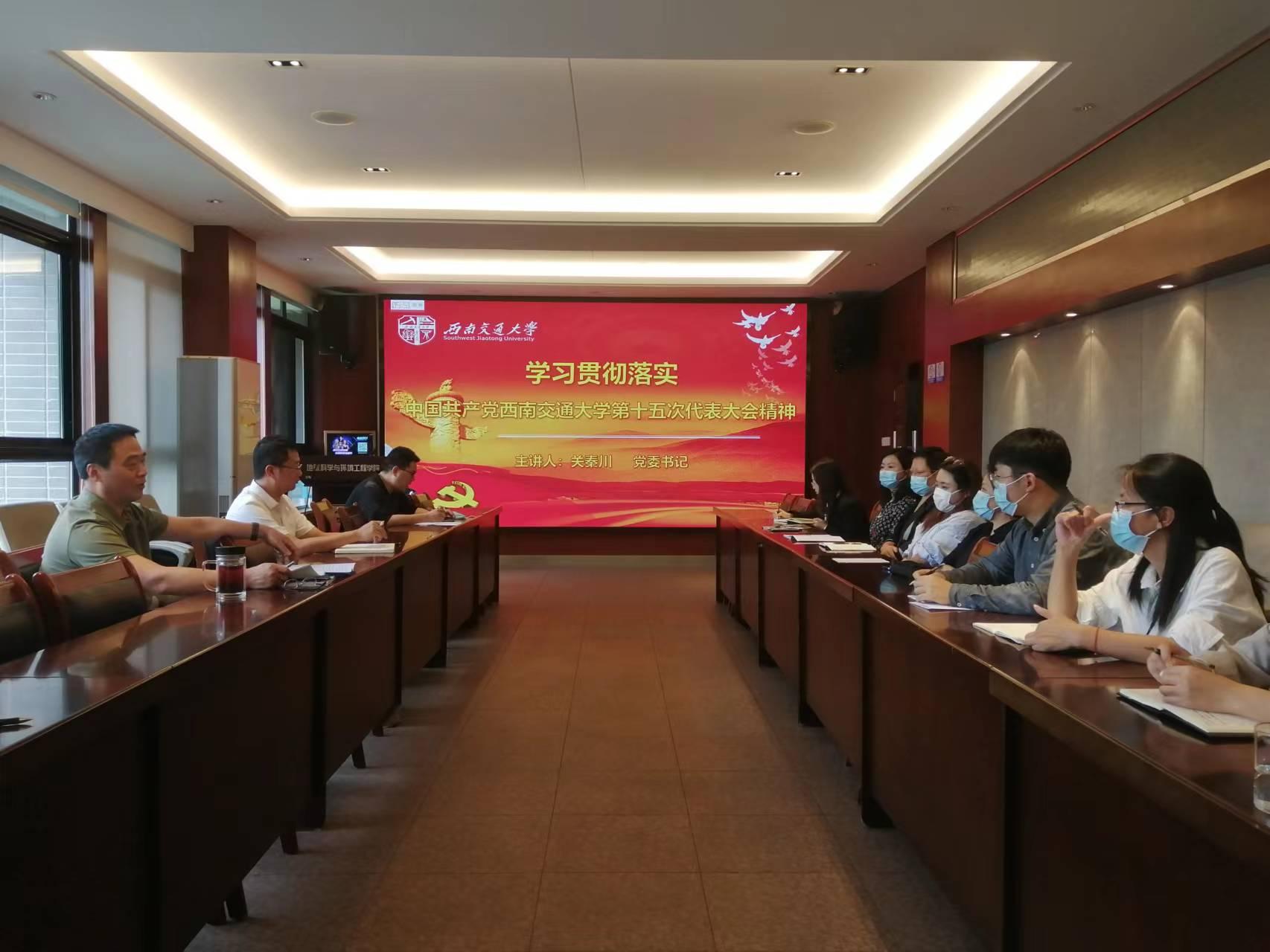 第十五次代表大会讲话精神。时隔七年,学校第十五次党代会胜利召开,大会的主题是:高举习近平新时代中国特色社会主义思想伟大旗帜,深入贯彻落实习近平总书记关于教育的重要论述,全面总结成绩与不足,把握学校面临的主要矛盾,明确学校新时代的办学思路、发展目标、基本准则、实现途径,统一思想,凝聚共识,振奋精神,不断谱写中华民族伟大复兴的西南交大新篇章。王顺洪书记作题为《踔厉奋发 笃行不怠 谱写中华民族伟大复兴的西南交大新篇章》的工作报告,从10个方面回顾总结了第十四次党代会以来学校建设所取得的成就,客观分析了学校发展过程中存在的不足,明确提出了未来五年学校高质量发展的实现途径。关秦川同志对报告内容进行了细致的解读,并结合自己多年的交大工作经历,以及在不同岗位的工作经验,与同志们进行了深入交流。他指出学院成立11年以来,在全院师生的共同努力下,取得了明显成绩,但仍存在明显的不足与短板,未来学院各项工作将力争全面铺开、重点开花。