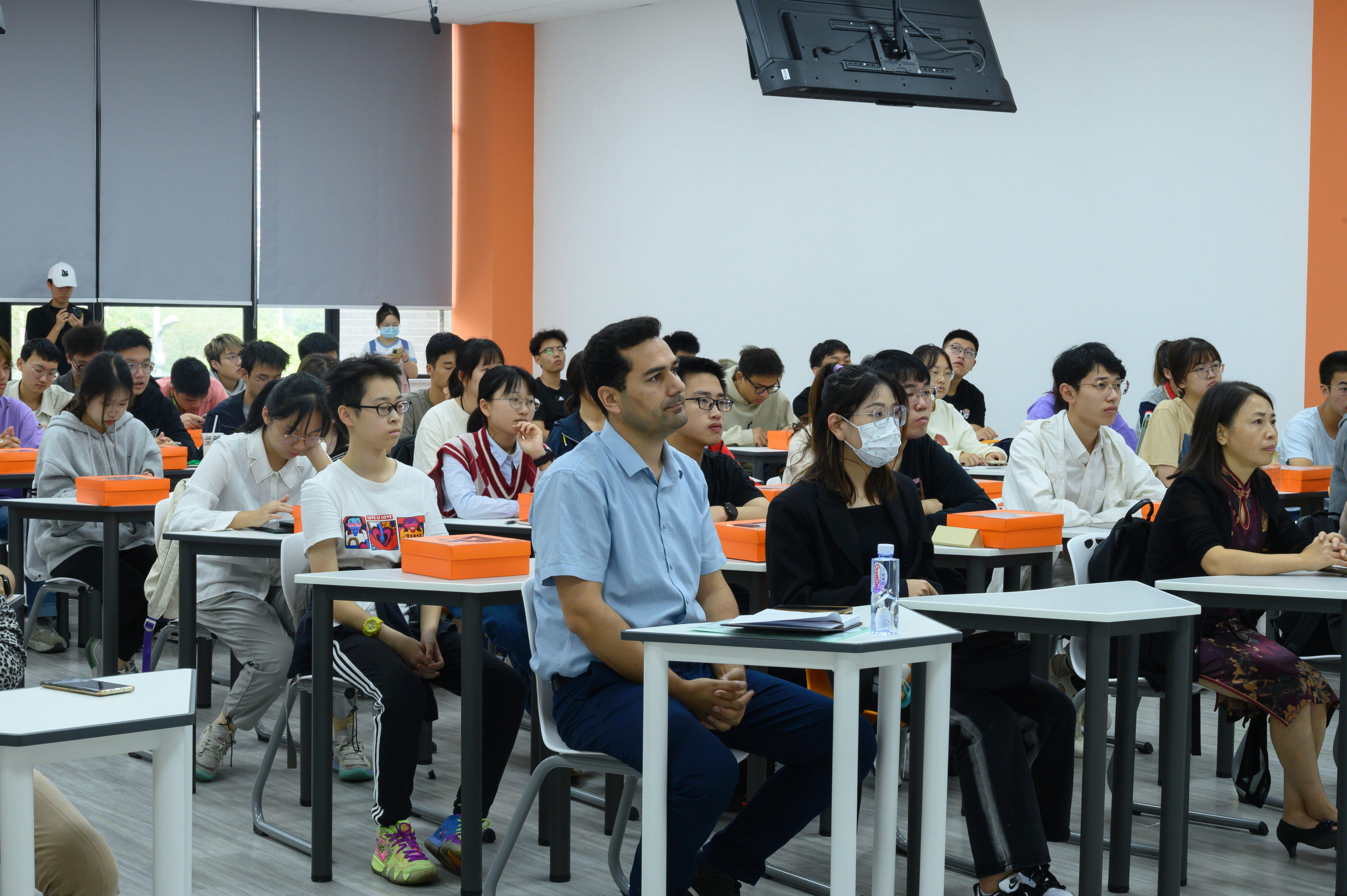 党委副书记、副院长许军华,党委副书记、纪委书记傅尤刚,副院长张玉春,学院办公室主任兼项目部行政主管关方,环境工程专业OSU项目教学主管、学业导师刘洋,综合事务员陈茜,教务员老师牛小会,学业导师代表张胜利、陈钰、曾卓,工程基础化学课程任课老师Hassan,以及2022级安全工程(中外合办)与环境工程(中外合办)专业全体学生。本次教学班会分别由辅导员翟琦老师、孙惠敏老师主持。