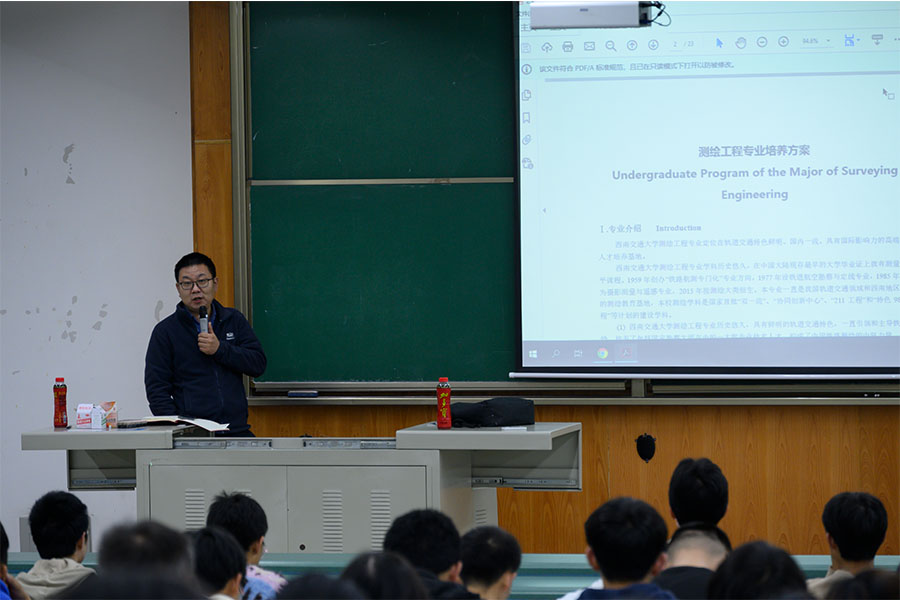 活动伊始,曹云刚向同学们介绍了本次活动的主要内容。接着,张同刚就学习目标、选课方式及注意事项等方面对测绘专业的培养方案进行介绍。他引导同学们正确选择课程,表示学校支持学生依据个人兴趣选择部分课程,同时列举具体反面案例,避免学生由于错误选课造成学业上的损失。最后,张同刚还就测绘工程茅以升班在培养方案上的不同以及茅以升班相关政策和选拔机制予以说明,帮助同学们深入了解专业培养情况。