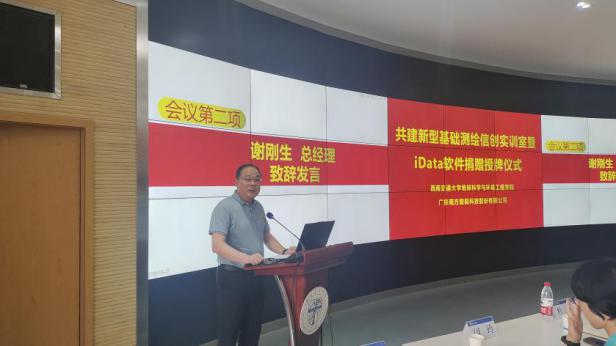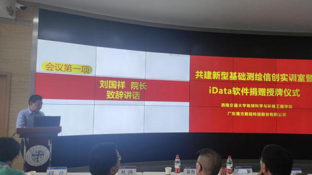 犀浦校区X4243会议室举行了新型基础测绘信创实训室暨iData软件捐赠授牌仪式及主题讲座。参加本次活动的领导和嘉宾有:南方数码集团总部谢刚生总经理、南方数码渠道发展部张巨林总监、南方数码成都分公司王建总经理、蘑菇视频