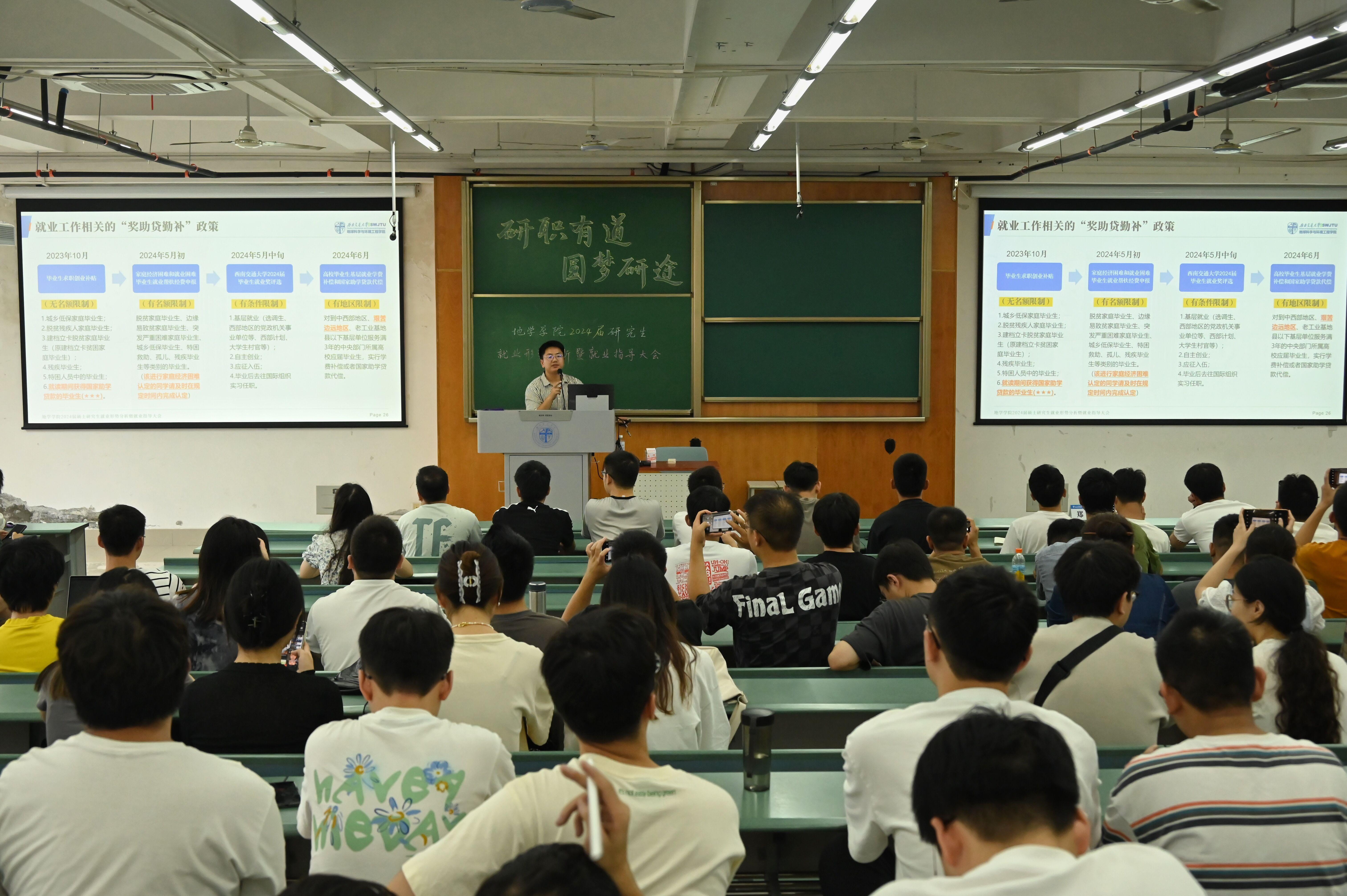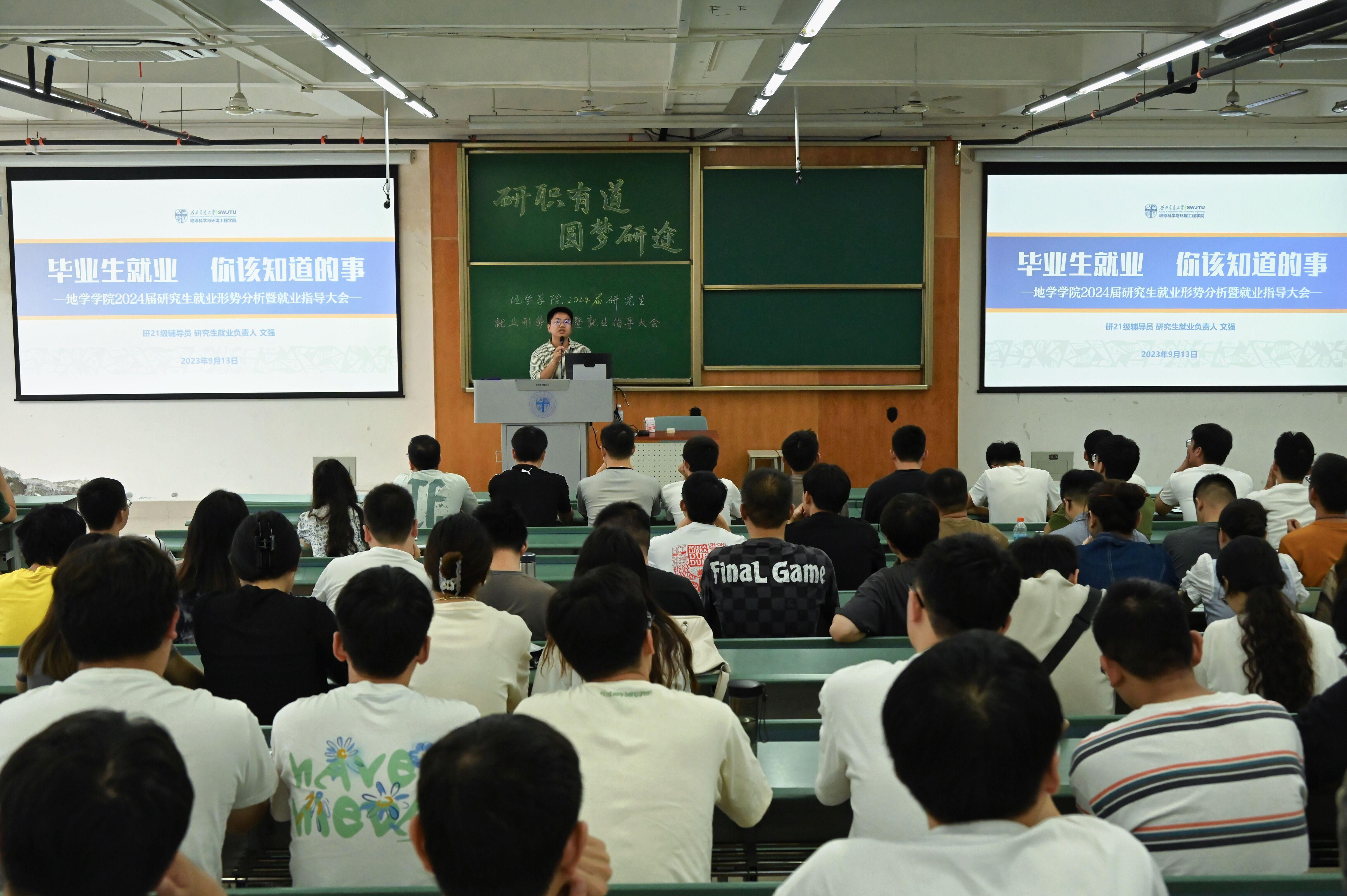 于犀浦校区X4350教室举办了2024届研究生就业形势分析暨就业指导大会,本次会议由2021级研究生辅导员文强主持,学院党委副书记郑波出席、全体2024届研究生参加。