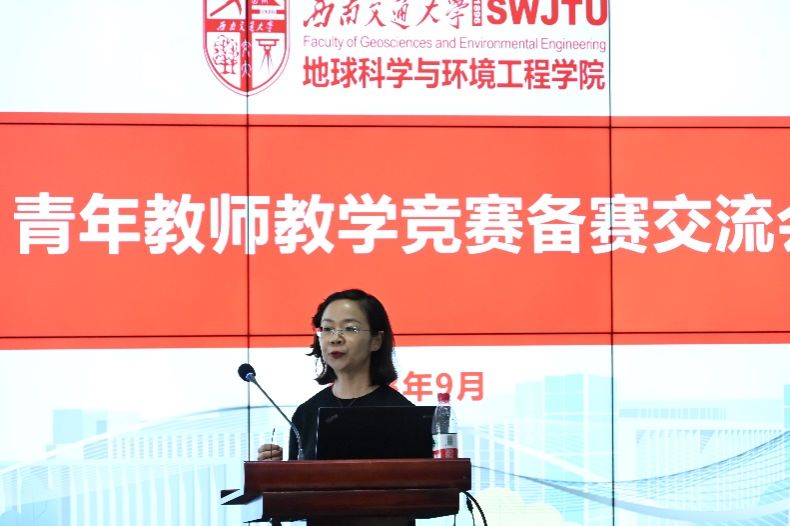最后,四川省2022年青年教师讲课比赛三等奖荣获者、地质工程系杨情情副教授对青年教师教学竞赛进行了具体分享,阐述了此项竞赛的意义、参与该竞赛所需要做的准备以及如何组织所有的材料并恰当设置课程安排。讲解过程中,杨情情老师广泛举例,以“蒙脱石散中的什么成分能治疗腹泻?”作为范例阐述“如何引入问题?”;结合自身实例,建议大家利用科学方式刻意训练,改掉口头禅的毛病……借助一个个生动的实例,杨情情老师为青年教师作出了优秀示范,极具参考价值。