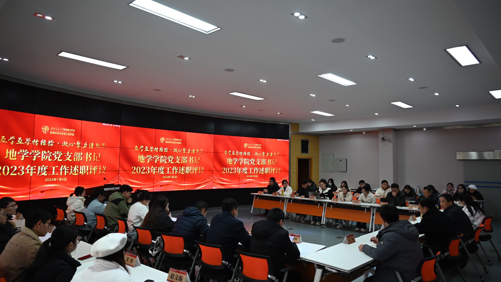 党委书记关秦川分别对教工党支部和学生党支部进行总结。关书记首先对教工党支部过去一年的工作给予了充分肯定,尤其在理论学习、教学科研、师德师风等方面均取得了显著成效。关书记强调,面对新时代的挑战和机遇,在学院的新一轮发展中,各教工党支部要继续发挥党建引领作用,结合各支部特点,聚焦学科建设、科研学术和创新服务,讲好“地学文化故事”,努力开创学院党建工作新局面。