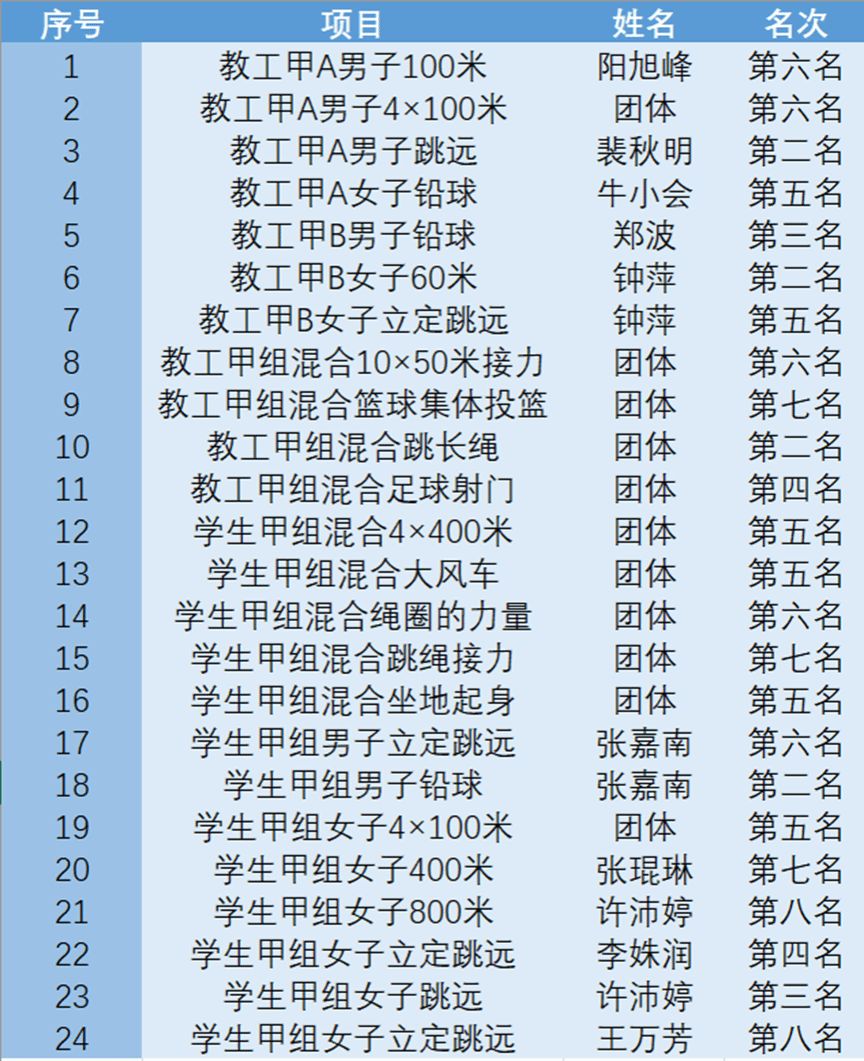 师生勠力同心、奋勇搏击,取得优异成绩,荣获学生甲组团体第七名、教工甲组团体第七名的优异成绩。