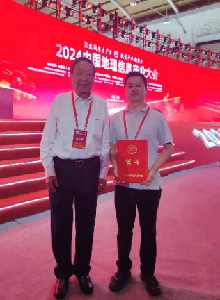 图2 陈敏研究员获地理信息科技进步一等奖并与李德仁院士合影