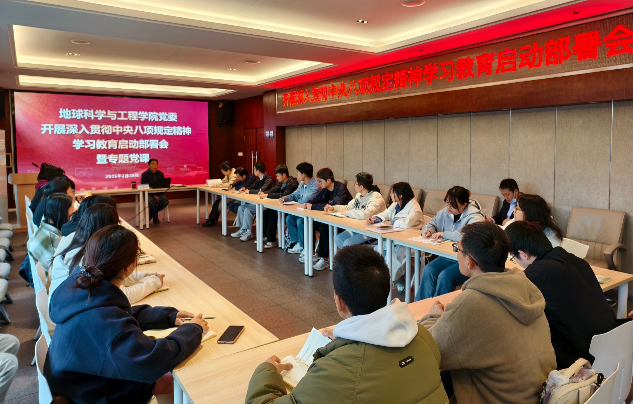 党委在X4520会议室召开深入贯彻中央八项规定精神学习教育启动部署会暨专题党课,此次大会由学院专职组织员李晓宇主持,学院党委书记关秦川主讲,学院全体教工、学生党支部书记参与此次会议。
