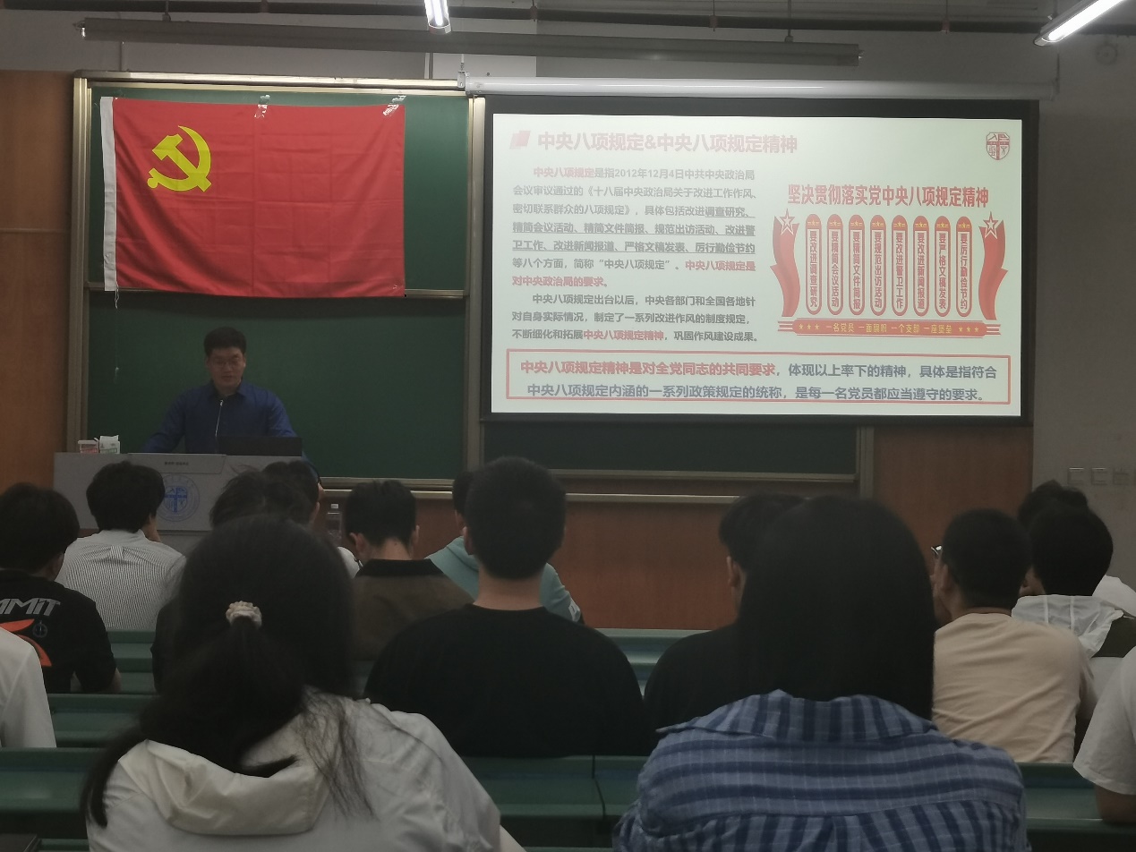 接着,赵院长深入讲解了中央八项规定的主要内容及其精神实质,通过生动的案例,深刻阐述了中央八项规定在实际工作中的贯彻落实情况,强调中央八项规定精神是全体党员应共同遵守的行为准则。
