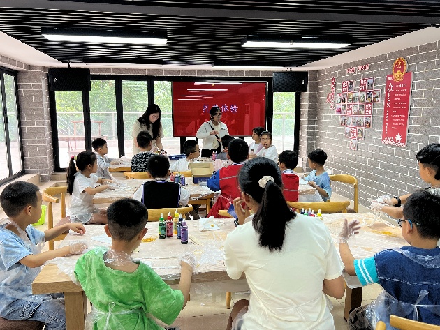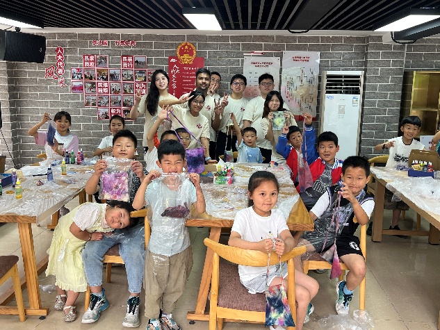 志愿者与社区儿童结对合作,共同完成扎染和贝壳画作品。孩子们天马行空的创意与志愿者耐心的指导相映成趣。一幅幅色彩斑斓的作品不仅展现了童真,更凝聚了两地青年的协作精神。香港理工大学的陈同学感慨道:“孩子们教会我用更简单的视角看世界,这种双向的成长令人难忘。”