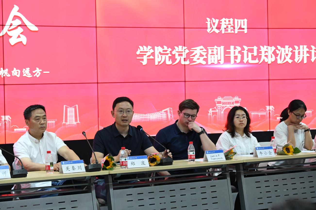 郑波副书记则殷切寄语即将赴美学习的党员同志,要讲先进,以身作则,树立榜样;学生干部要讲责任,认真管理服务同学;全体同学要讲团结,互帮互助,共同进步。最后,郑书记祝福同学们在美学习期间既要仰望星空,也要脚踏实地,学有所成,实现梦想。