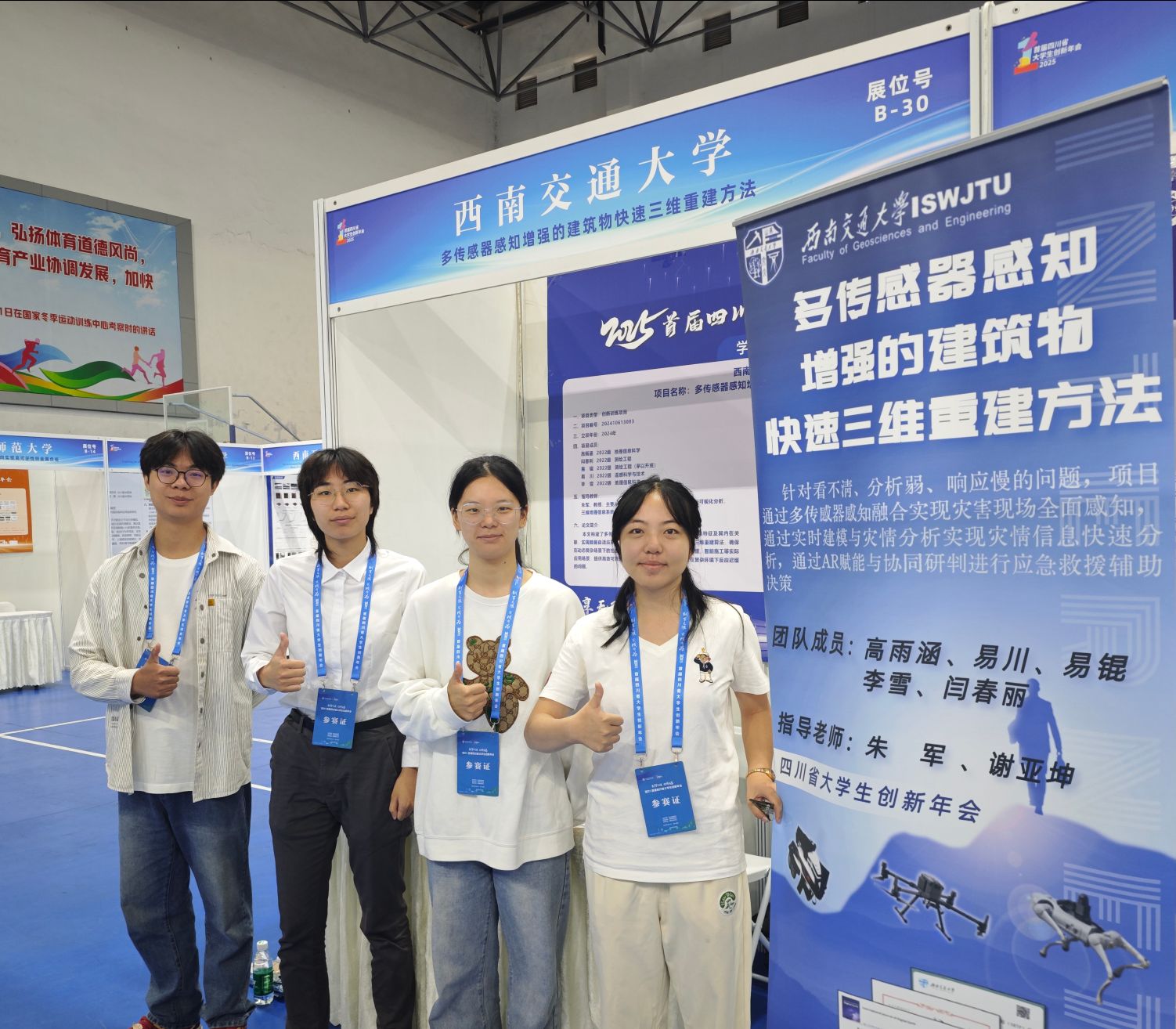 代表队表现优异,在朱军老师、谢亚坤老师的带领下,由高雨涵、易川、易锟、李雪、闫春利组成的团队携参赛项目《多传感器感知增强的建筑物快速三维重建方法》首次参与该赛事,斩获一等奖,学校荣获优秀组织奖。