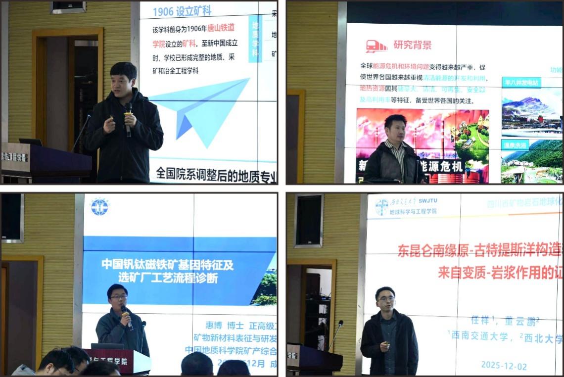 张云辉副教授作了题为“青藏高原深大断裂带地热成因研究进展”的学术报告,重点阐述了地热流体的地球化学特征与数值模拟方面的最新成果;中国地质科学院矿产综合利用研究所惠博正高级工程师以“中国钒钛磁铁矿基因特征及选矿厂工艺流程诊断”为题,从研究背景、矿石基因特征及工艺流程诊断案例等方面展开,研究内容前沿、方法丰富,并对未来合作方向进行了展望;蘑菇视频