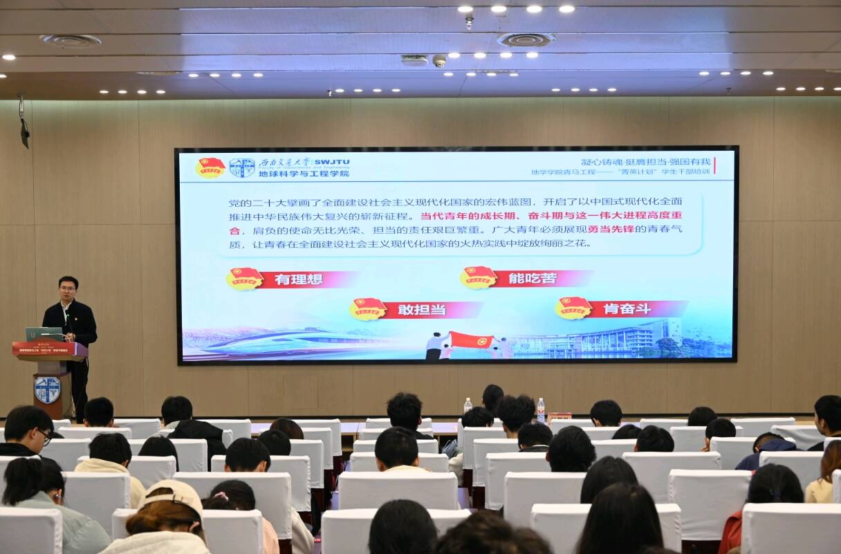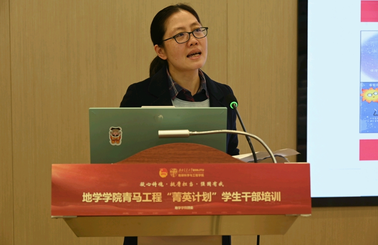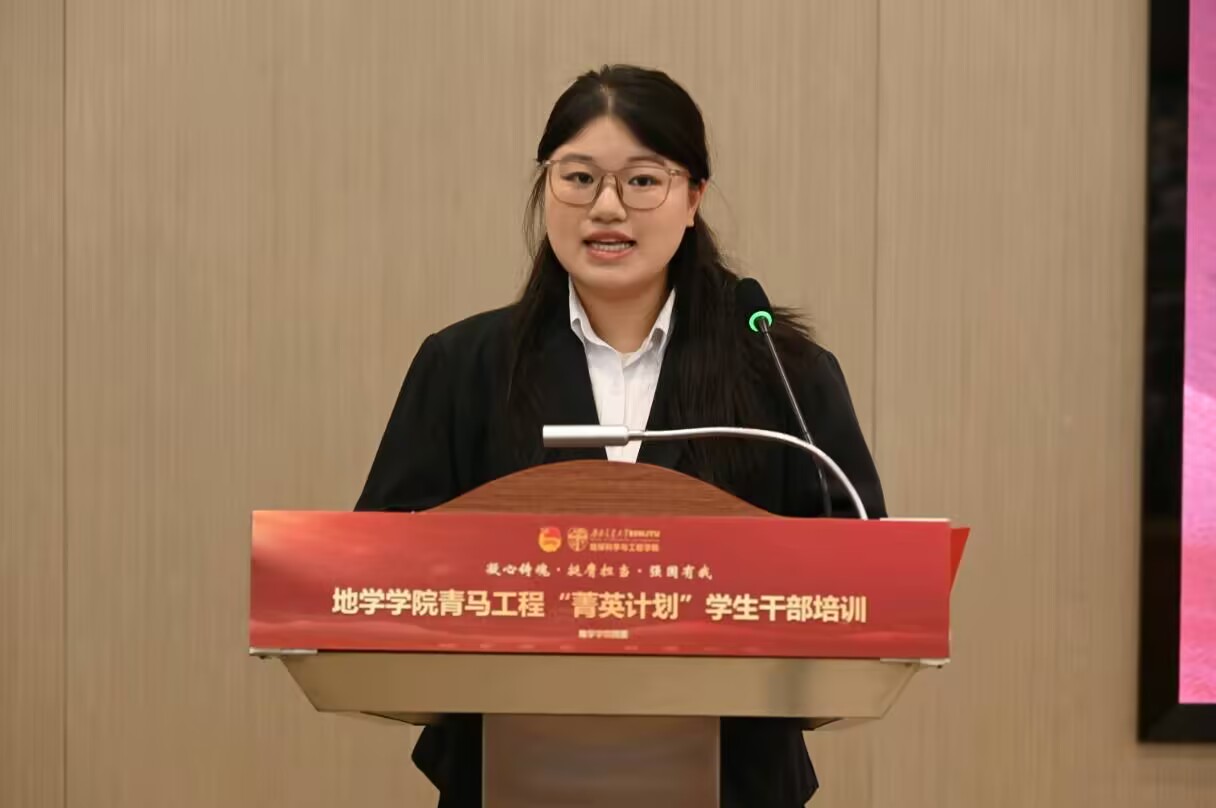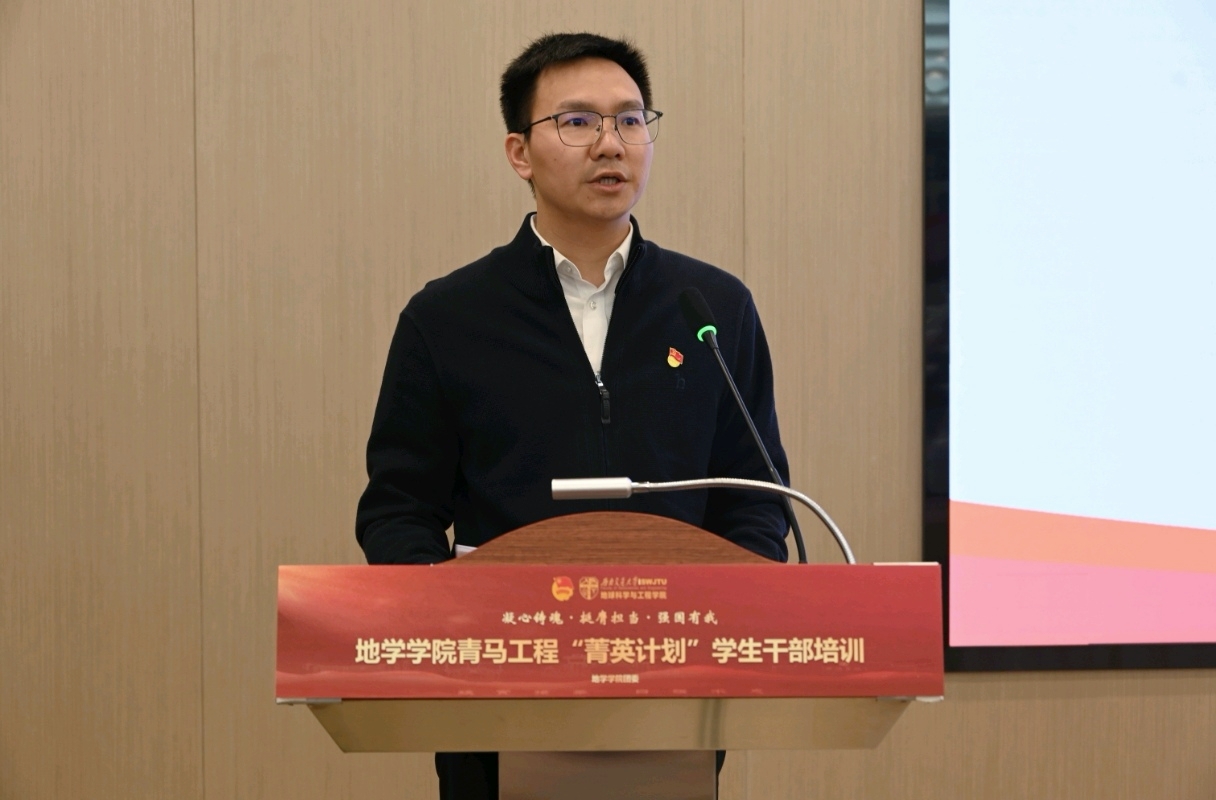 培训必修课上,曾洁副书记就《新时代地学青年的责任与担当》课题进行专题培训,系统阐述了学院以“地新引力”育人品牌为核心,通过强化思政引领、深耕文化实践、激励担当作为,着力培养青年学子立大志、明大德、成大才、担大任的育人路径与实践成效。杨都强老师围绕《争做新时代优秀学生干部》的课题强调学员应在思想引领、学风建设、实践服务等工作中发挥模范带头作用。