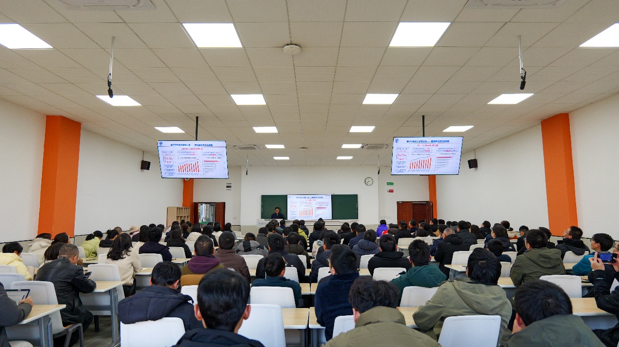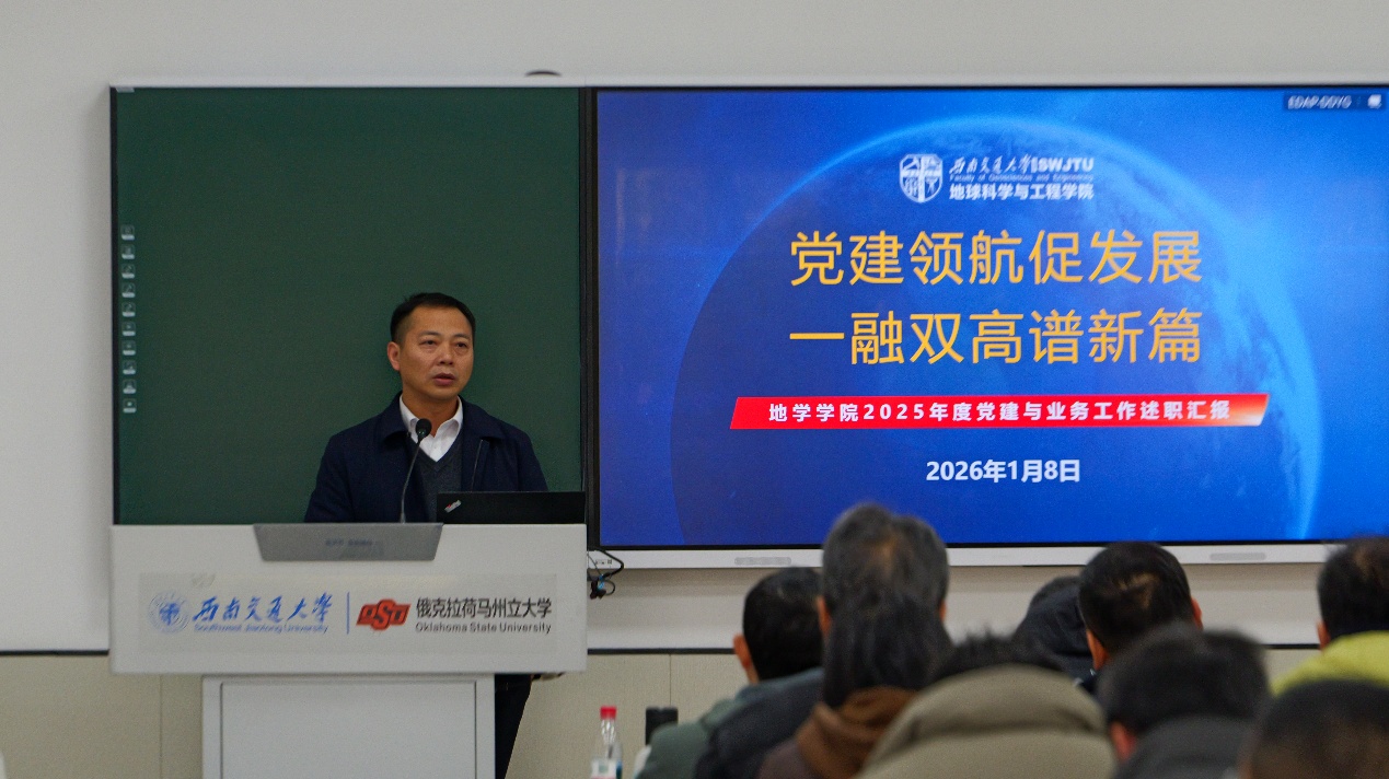 “十四五”发展总结暨“十五五”发展谋划汇报。刘院长系统回顾了“十四五”期间学院在学科建设、人才培养、师资队伍建设、教学科研创新、国际化交流合作等关键领域取得的突破性进展与标志性成果。他强调,这些成就的取得离不开全院师生的共同奋斗;面向“十五五”,学院要坚持党建引领,深化党建与业务融合,聚焦高质量发展、高水平建设这一目标,持续优化学院治理体系,加强人才引进和培育,深耕学科专业建设,深化基础理论研究,坚持立德树人,全面提升地学人才培养质量。