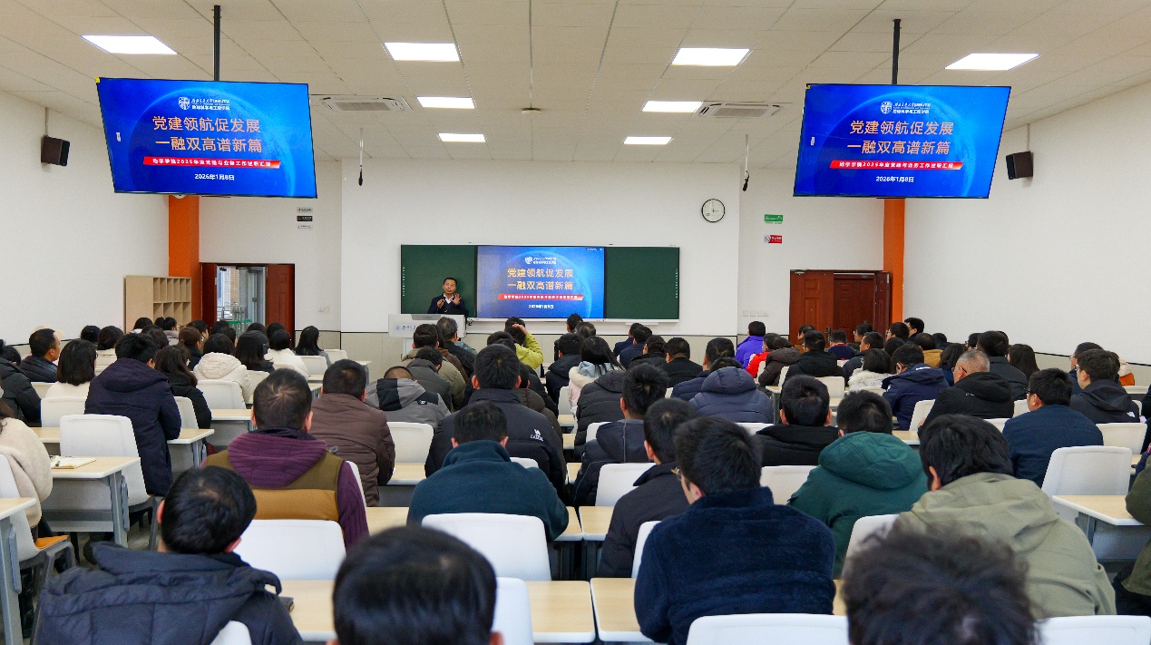 随后,郑简平书记代表学院党委作题为“党建领航促发展 一融双高谱新篇”年度党建与业务工作汇报。他指出,学院持续深化“一融双高”建设,贯彻“学习教育”这一主线,坚持“人才强院”“国际化”两大战略,持续打造“地心引力”“地学匠心”“地新引力”三大特色品牌活动,深化国际化建设、团队建设、人才培养、合作交流,围绕党建、教学、学科、人才、科研深入实施五大计划,学院各项目标任务高质量完成,人才培养质效稳步提升、人才工作成效显著、科研工作再上新台阶、国际化特色越发鲜明。