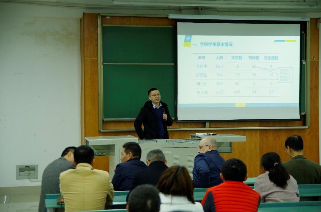 学院党委副书记傅尤刚围绕学院学生工作和纪委工作进行汇报。关于学生工作,主要围绕学生的基本情况、就业情况、学风建设等方面进行汇报。关于学院纪委工作,傅尤刚原汁原味传达了学校11月14日学校纪委书记工作会议精神,重点传达了张学龙副书记的讲话精神,要求全体教职工务必认真学习戒鉴案例警示集,对标个人日常工作与生活,做到举一反三。