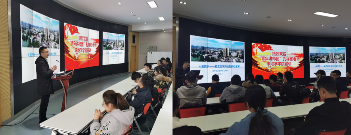 为提高本院学生工作能力,加强思想道德素质,明确未来发展方向,11月26日,地球科学与环境工程学院于犀浦校区X4243多功能报告厅召开,勤工助学岗位换位思考暨“青年讲师团”巡回宣讲,讲座由青年讲师团成员孔祥彬老师主讲。