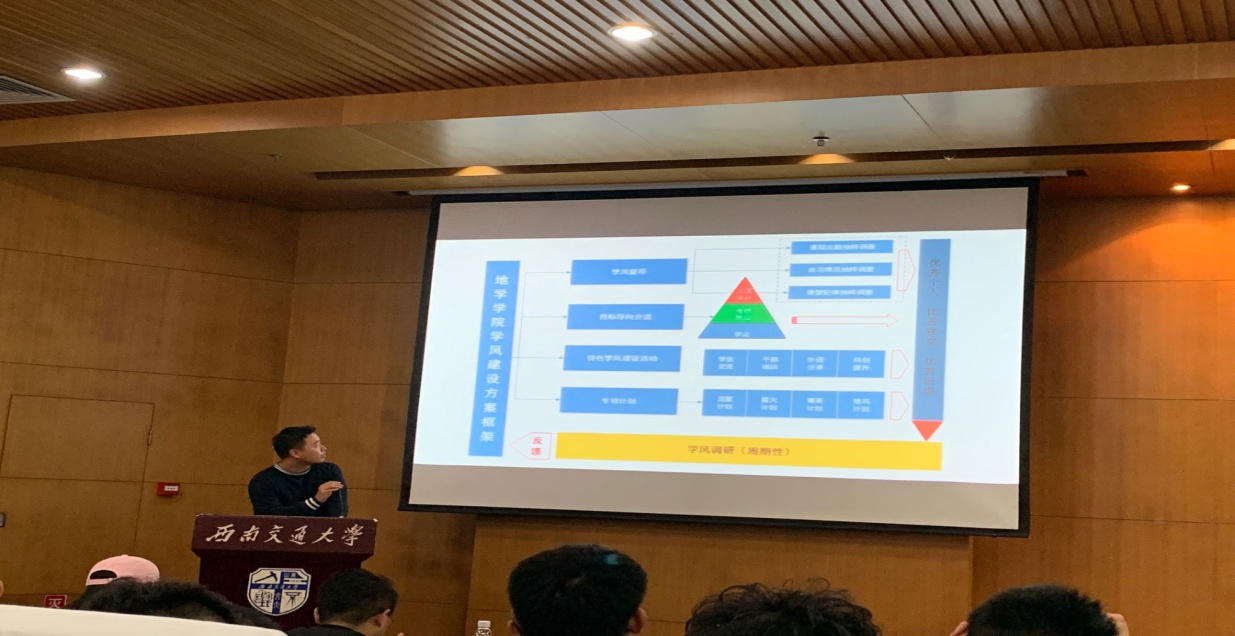 周青讲述学风建设月的研究报告。周青介绍了调研成果,简述了学风建设的基本情况与评价,针对母亲存在的主要问题提出了建议。