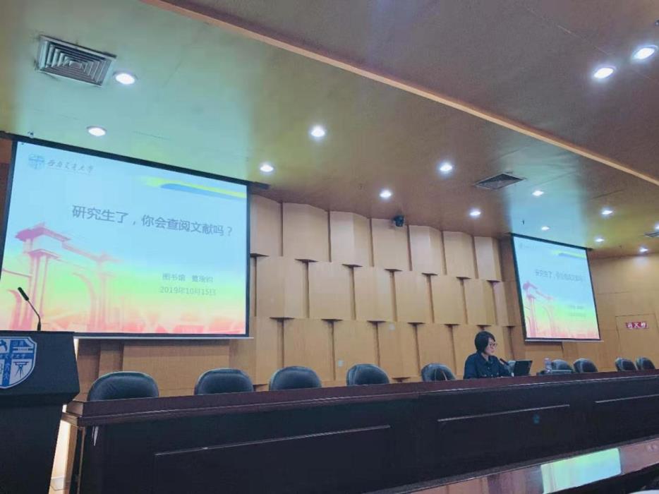 于图书馆二号报告厅举办研究生2019级环境、地质、测绘等专业关于文献检索与论文撰写的专题讲座,此次讲座由学科信息服务部副部主任夏婉钧老师主讲。