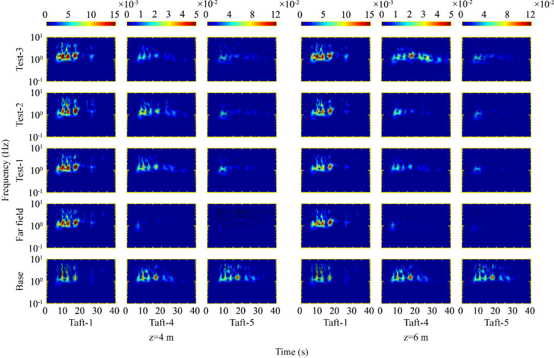图3 小震、中震、大震作用下土芯内时频域Stockwell谱