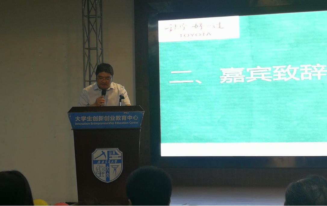 比赛开始前,赵锐老师上台致辞。首先赵锐老师对各位选手、嘉宾以及前来观看比赛的观众表示了热烈的欢迎,其次提到我国环境问题日益严重,且低碳环保这一概念提出已久。在设计中融入低碳环保,做出符合人类发展需求的产品,不仅便利大家的生活还能充分的节约资源,保护我们的生态环境。最后对参赛选手给予鼓励和期望,并希望通过此次比赛能够让大家将环保理念融入生活当中。